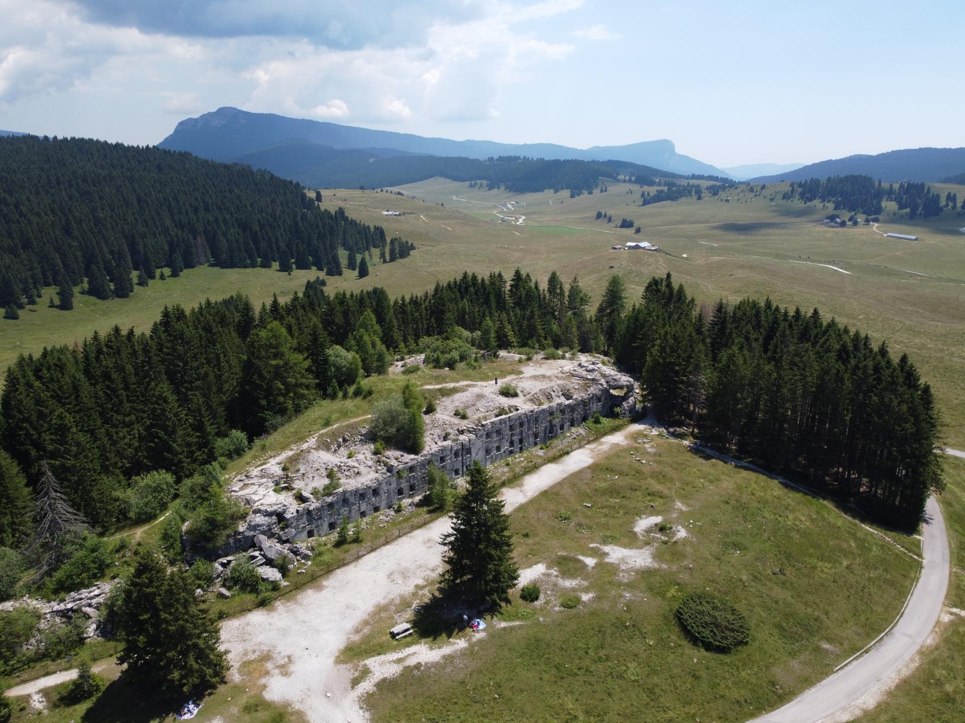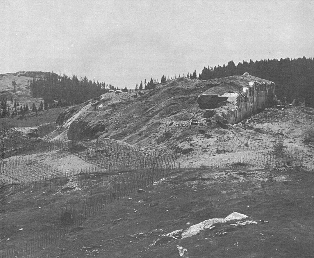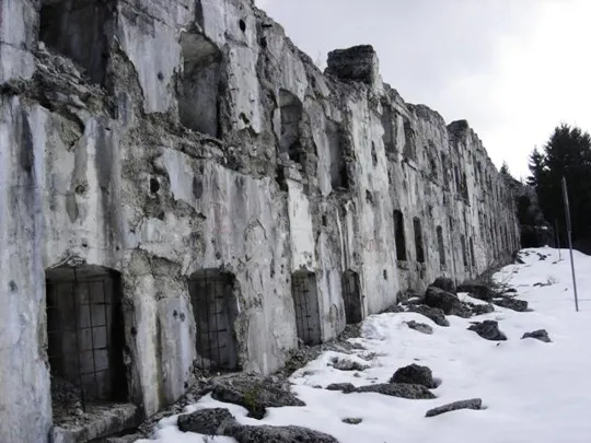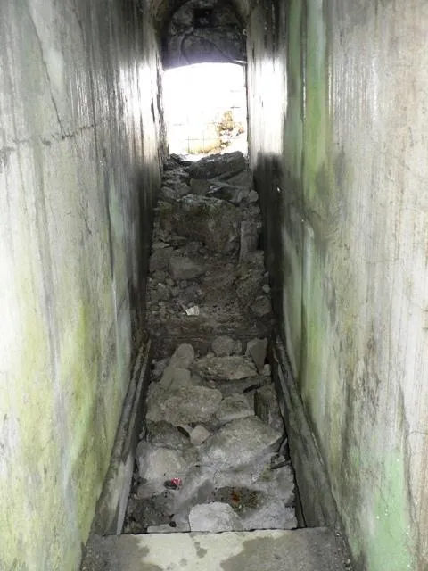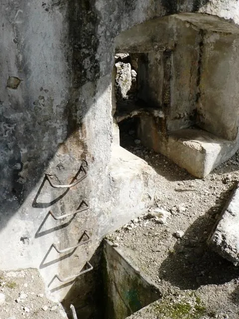Nel tetto del forte non si vedono i caratteristici fori per le cupole dei cannoni, l'unica cosa intatta è questa postazione da mitragliatrice.