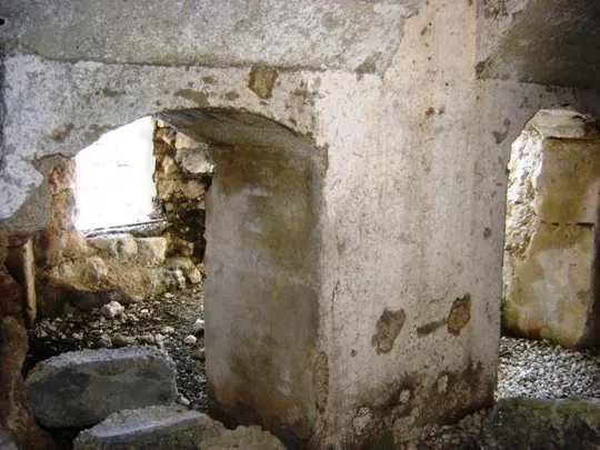 Anche l'interno è poco visitabile, ma presenta una caratteristica al momento unica. Nei corridoi si scorgono delle botole che portavano a corridoi inferiori, o forse, una piccola scala che però stringeva il passaggio del corridoio.