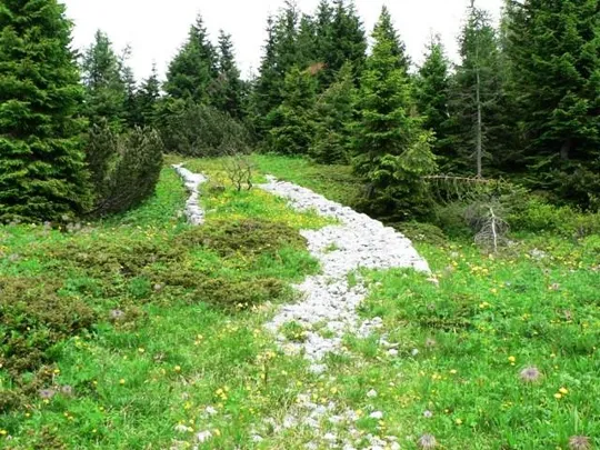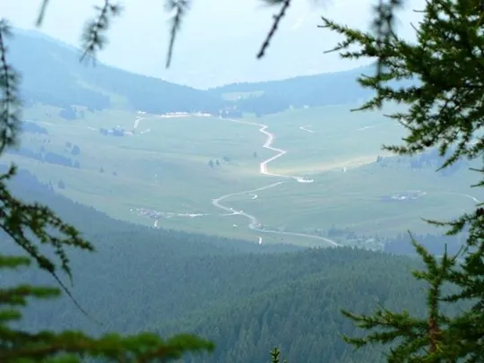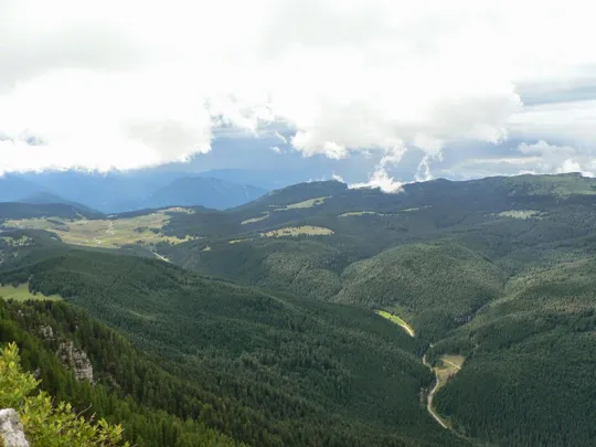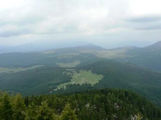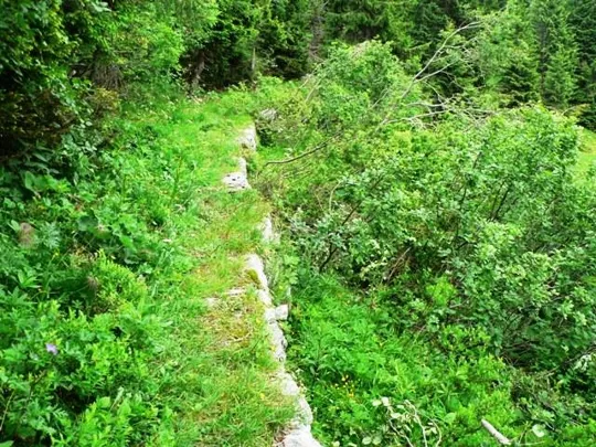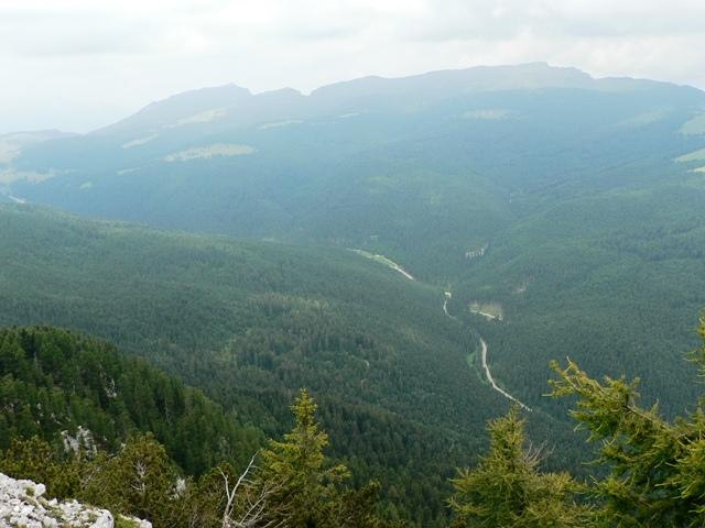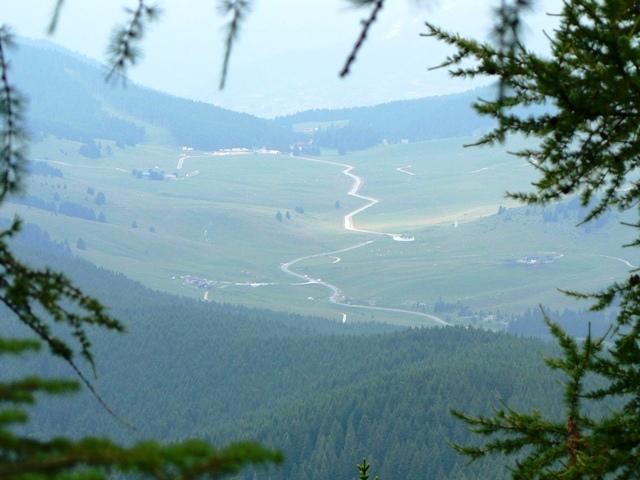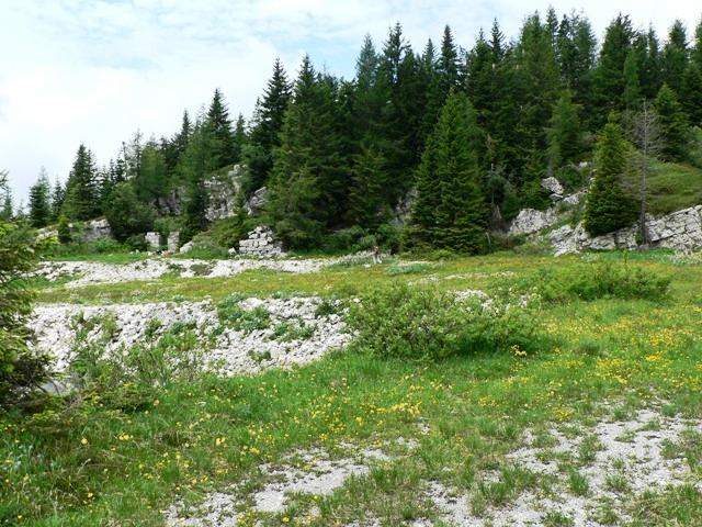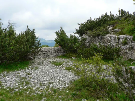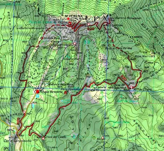 Per il ritorno si prosegue sul sentiero CAI 820, che inizialmente scende ripido sulla pista da sci per poi diventare sentiero e e quindi sulla ex strada militare. Con questa variante si può visitare anche la batteria Verenetta.