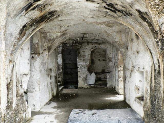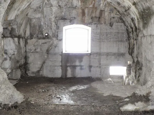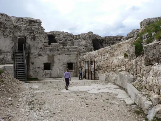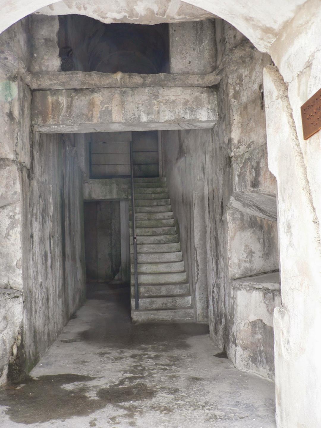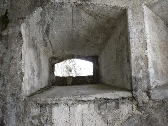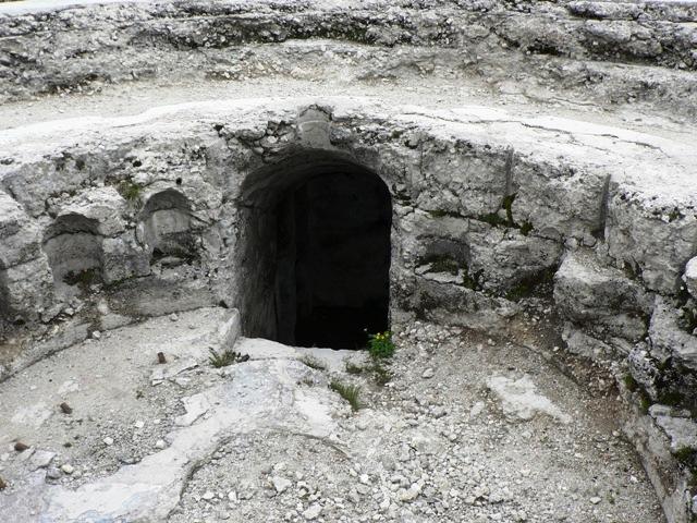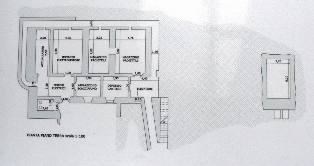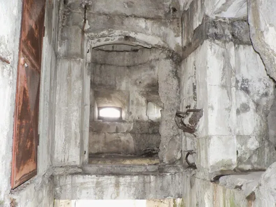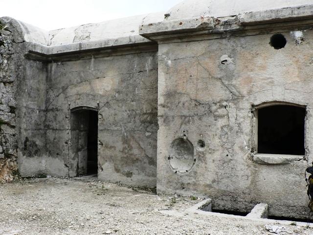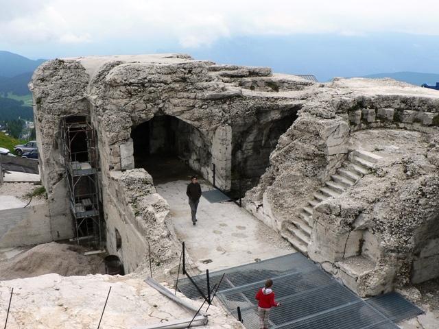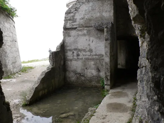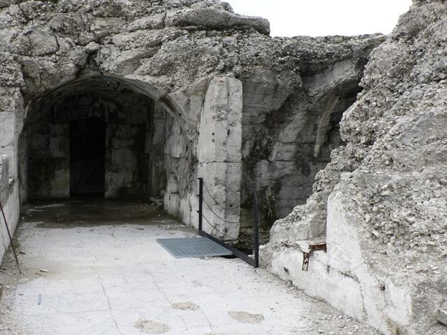 Nella visita alla casamatta principale, sede delle cupole corazzate, è evidente il disastro provocato dal proiettile da 305mm austroungarico.