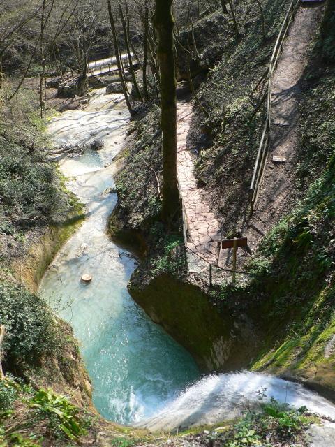 Nel parco un sentiero segue il percorso di un torrente, con delle varianti interessanti alla scoperta di grotte e panorami. Non si può andare con le carrozzine e questo ha fatto si che la mia bimba di 3 anni ha dovuto camminare per tutto il tempo. Ma le scoperte che ha fatto le hanno fatto dimenticare il fatto che ha camminato per un'ora