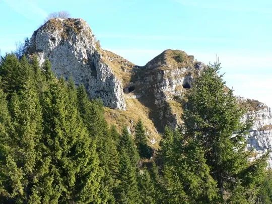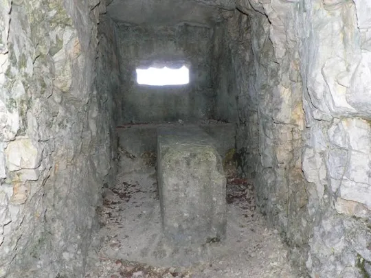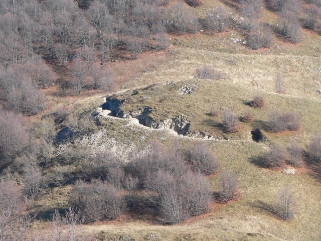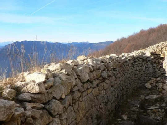 Il sentiero alla sinistra della cima del monte porta alle varie postazioni di artiglieria, mitragliatrici e osservatori. Nel versante opposto al sentiero è presente un sistema di trinceramento.