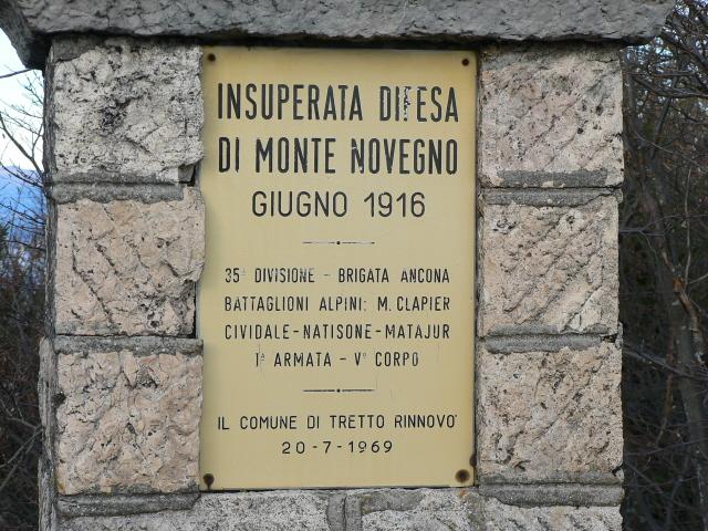 C'è poco da dire ma sicuramente tutto da scoprire. Il Monte Novegno non è mai stato conquistato dal nemico, e di sicuro era di importanza strategica perché da qui è possibile controllare Valli del Pasubio, Pasubio, Fiorentini, Valle di Posina, Tonezza e l'altopiano di Asiago.