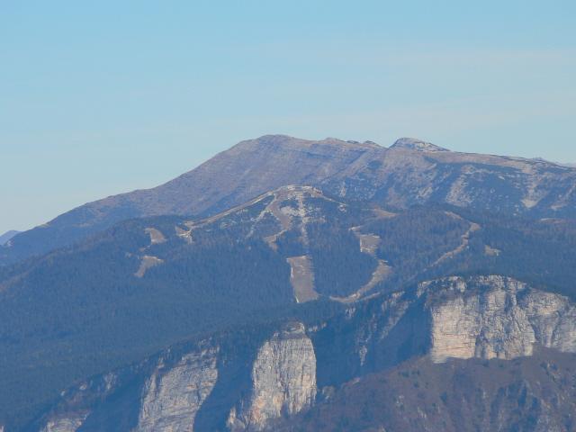 Il Monte e il forte Verena. Nel costone più sotto e a destra con un po' di occhio si nota anche Cima Campolongo e il suo omonimo forte.