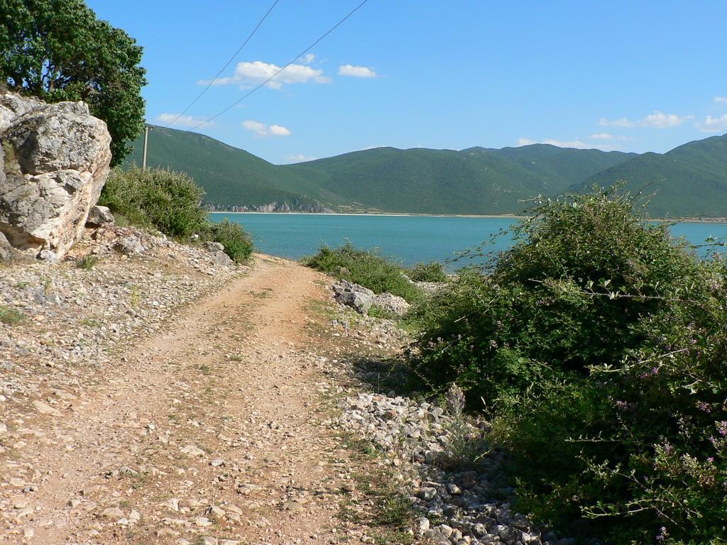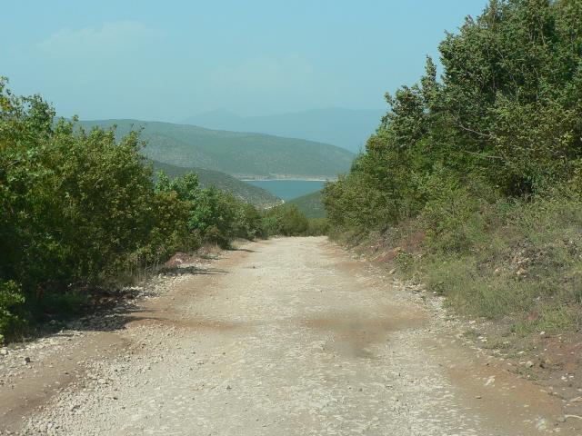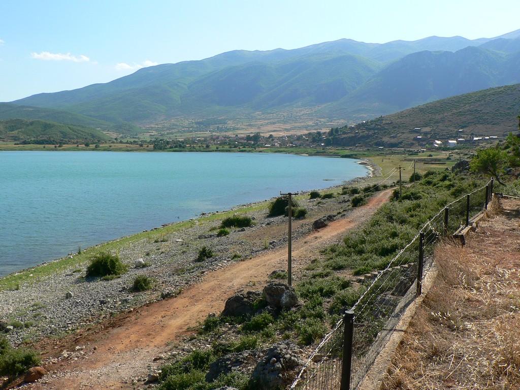 La strada continua in un falsopiano fino ad aprirsi e mostrarci il lago e il primo paese "Liqenas" (leggi Licienas) (2009: stanno allargando la strada). Quello che ci ha colpito era la presenza di parecchi asini in libertà. Correvano tranquillamente per le strade e, purtroppo, ne abbiamo trovato uno morto.