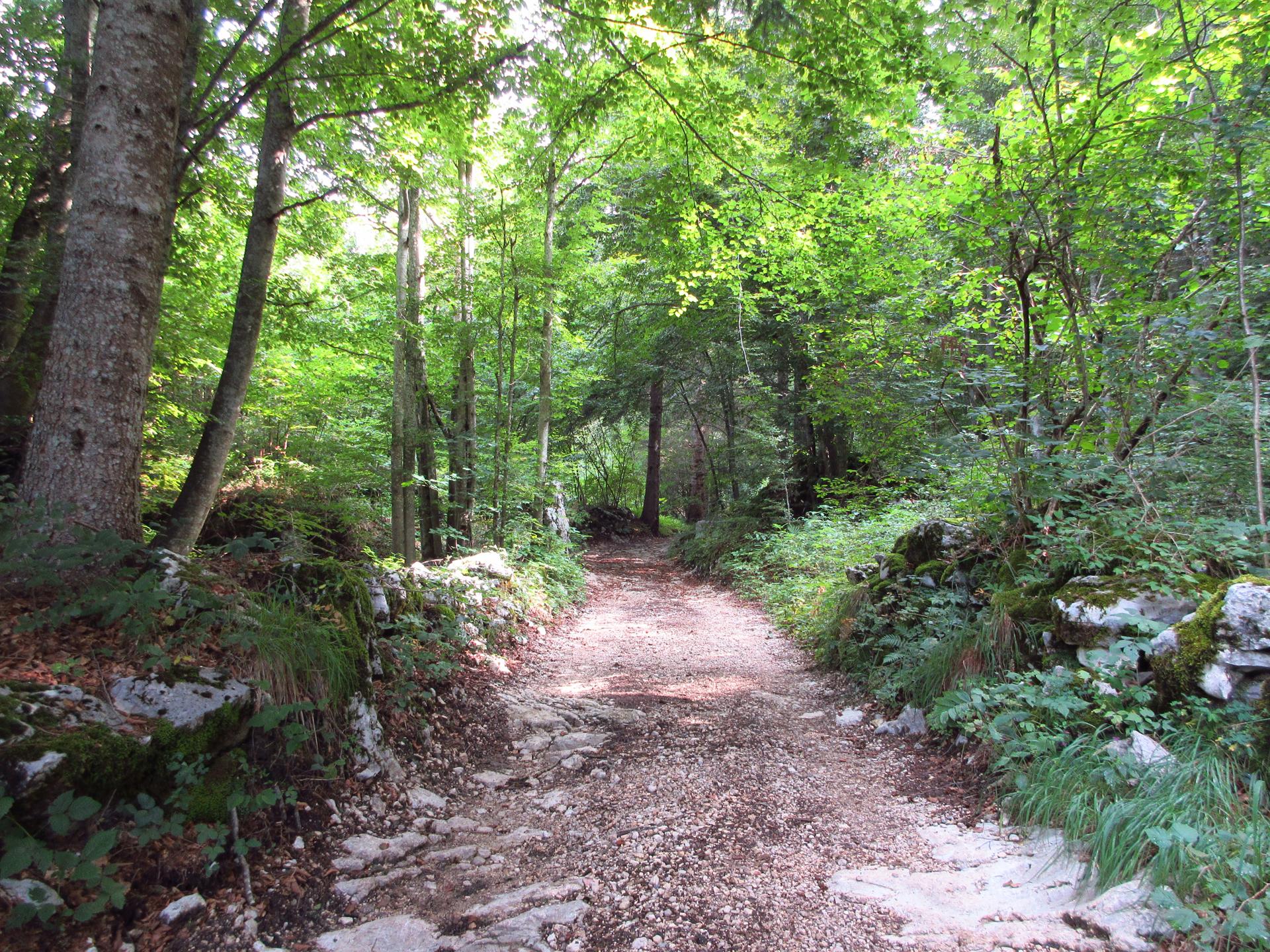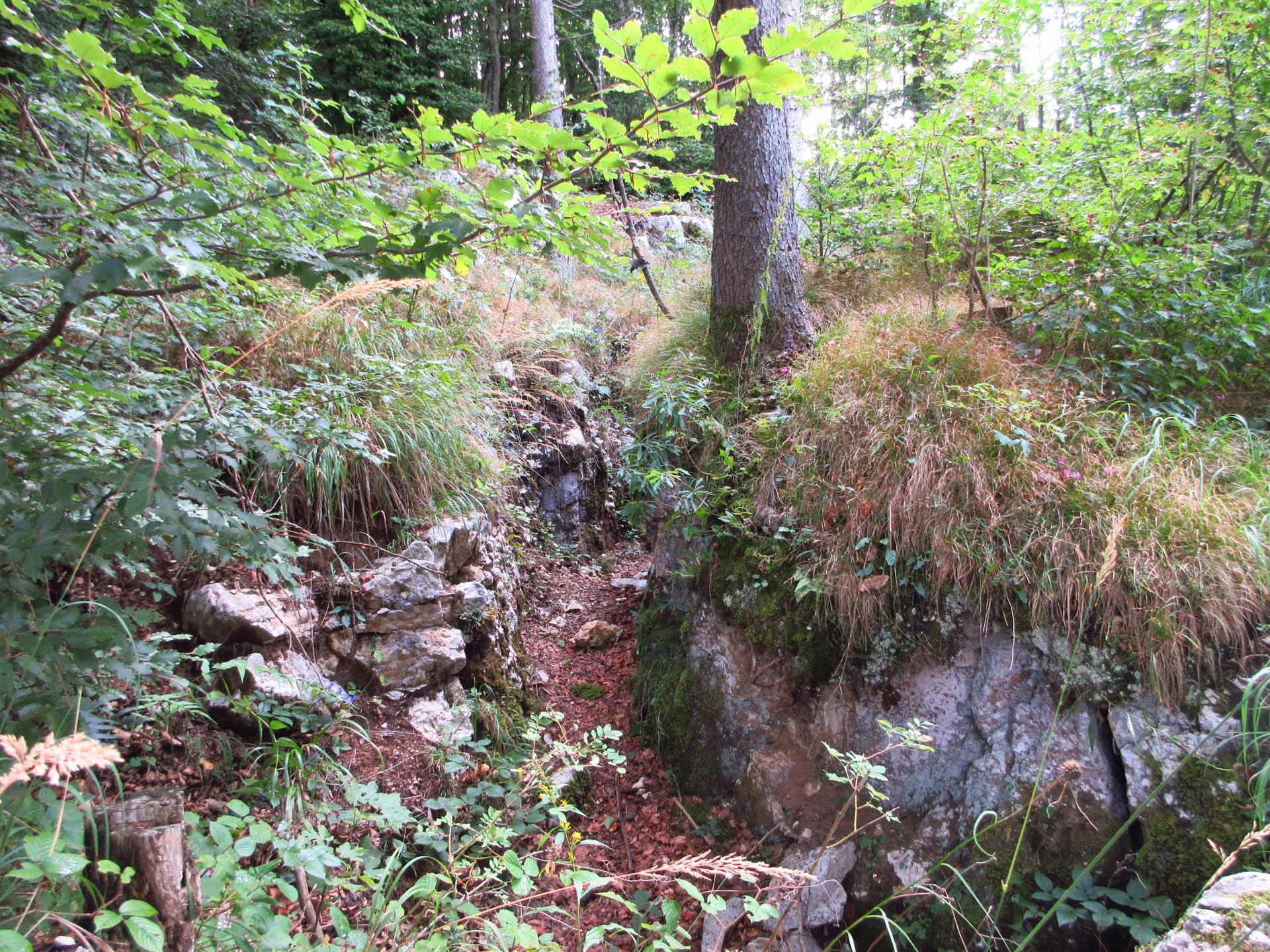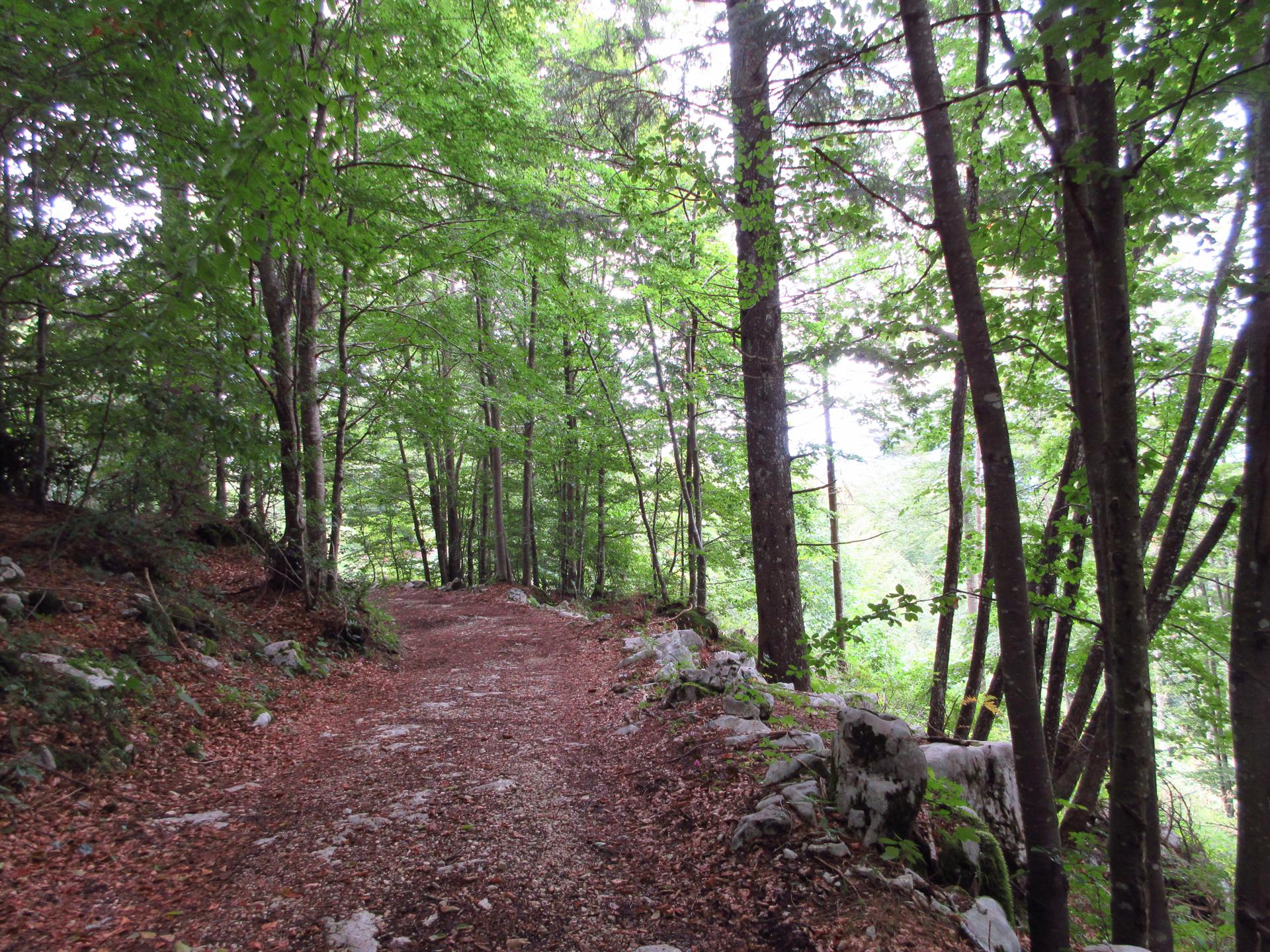 Il sentiero con segnavia 639 continua nel bosco in leggera discesa lungo una strada militare. Anche qui, nei pressi del tracciato, si incontrano diverse trincee della Grande Guerra.
