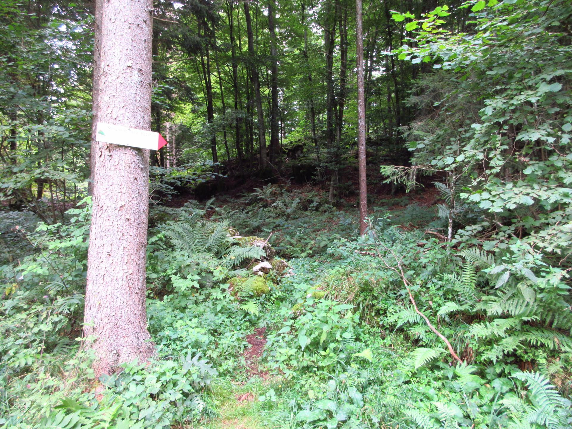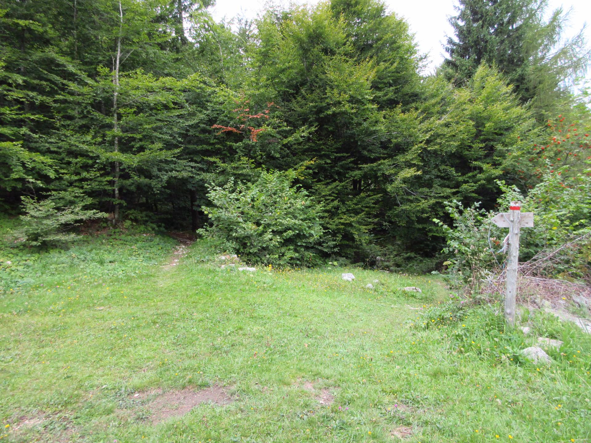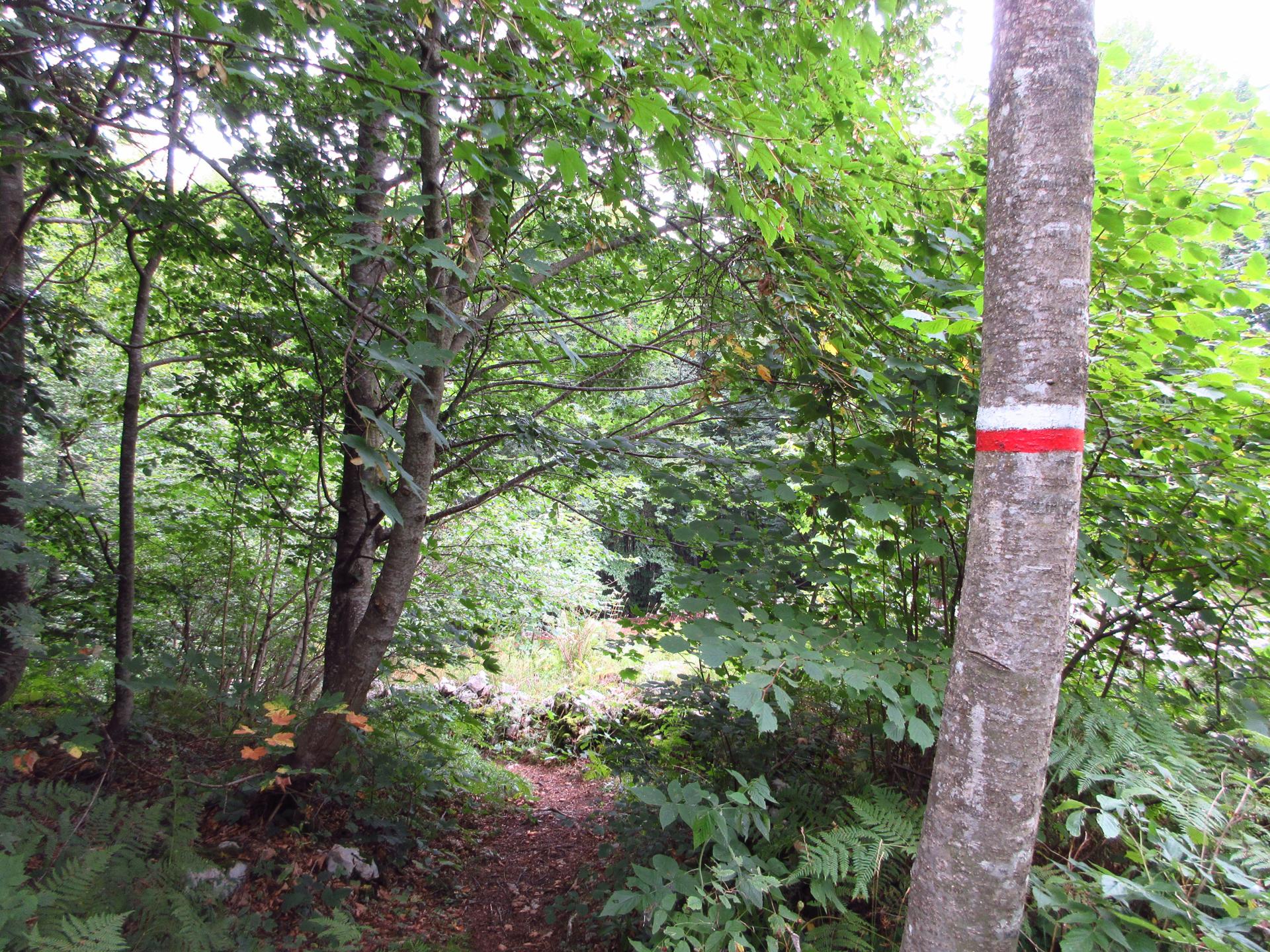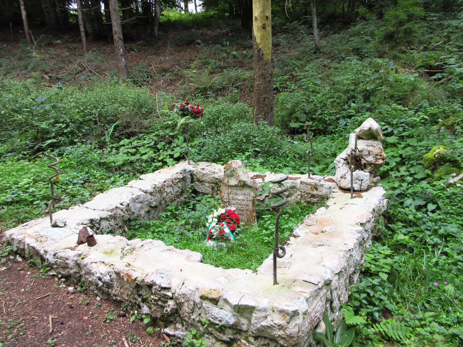 Usciti dal bosco in un prato erboso, non si deve seguire la strada che sale verso un’abitazione. Sulla destra si trovano invece le indicazioni che riportano subito nel bosco, in direzione della prima sepoltura.