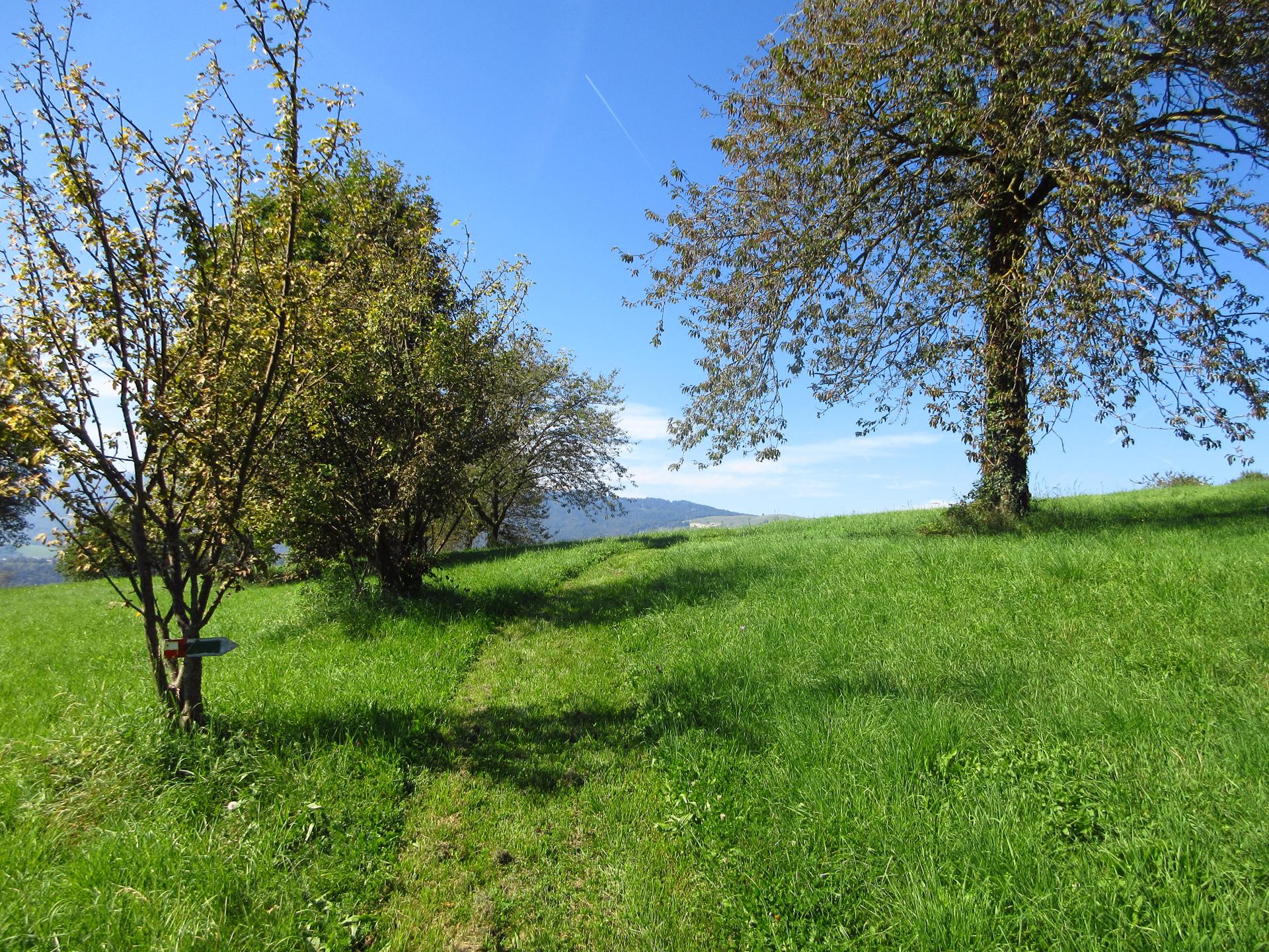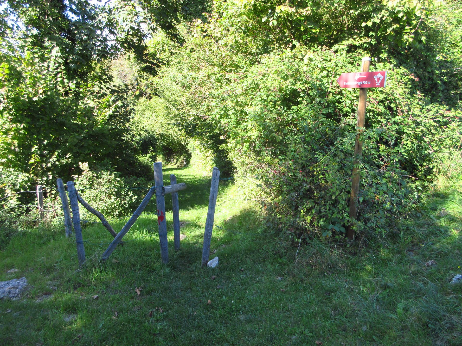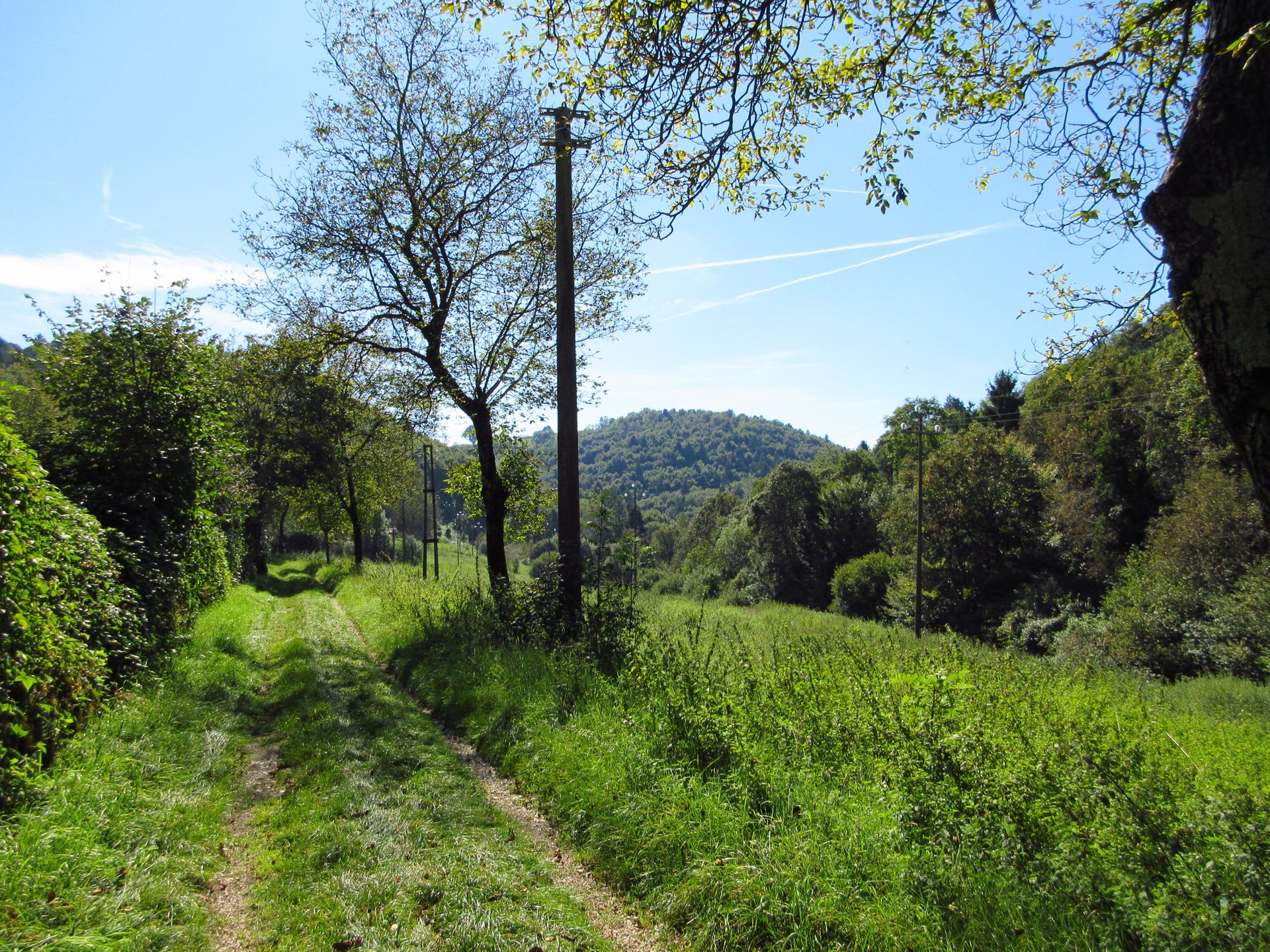 Usciti dal bosco si affronta probabilmente la parte più critica del percorso. Si cammina sul fondo di una piccola valle, dove l’erba alta può facilmente nascondere le tracce da seguire. Mi auguro che questo tratto venga mantenuto con l’erba tagliata al punto giusto, per permettere di orientarsi senza difficoltà.
