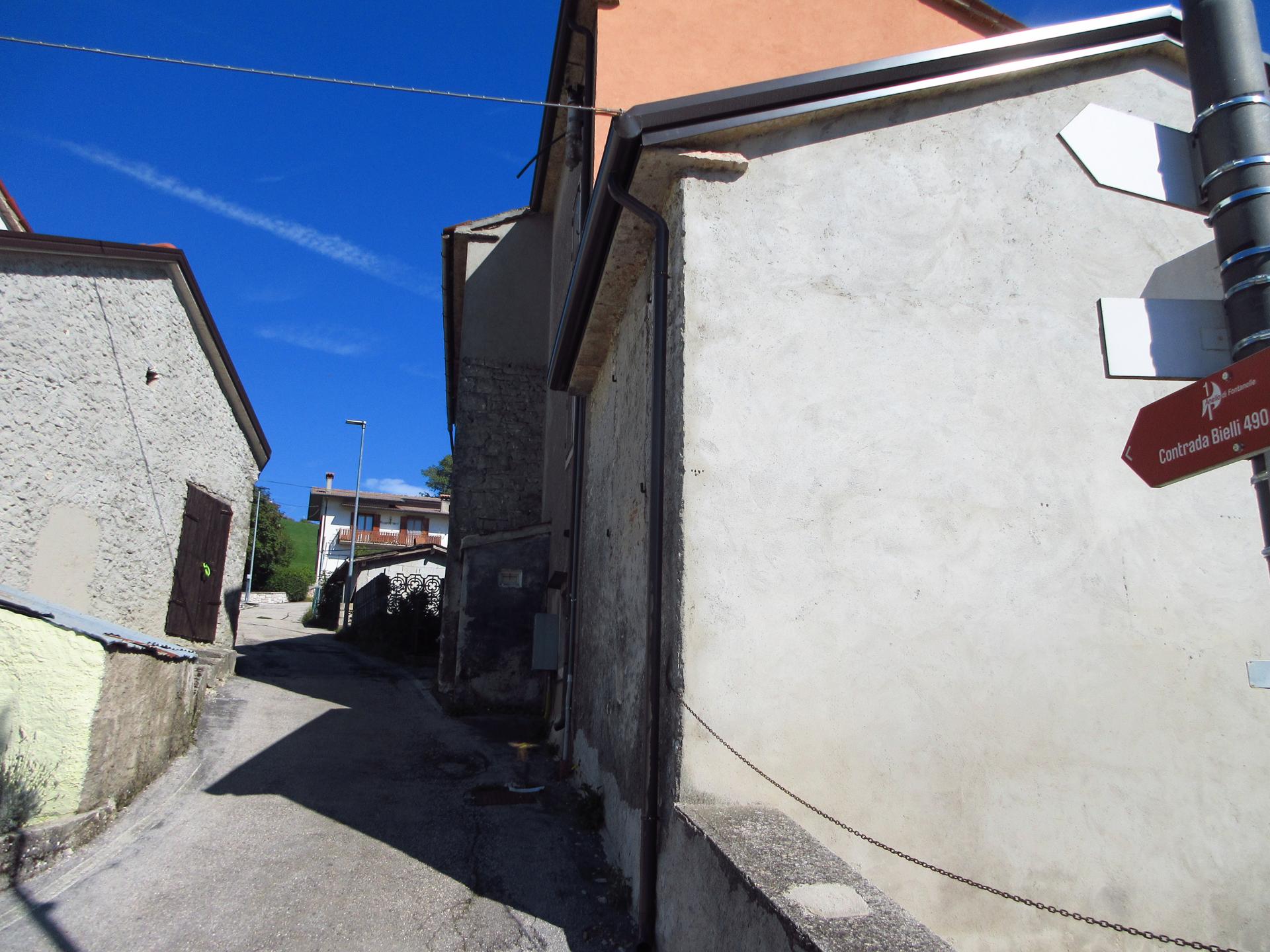 In contrà Bielli si prosegue sempre dritti, attraversando anche qui la strada. È bene fare attenzione a non seguire la tabella con l’indicazione “rientro a Fontanelle”, utile solo a chi desidera accorciare il percorso.