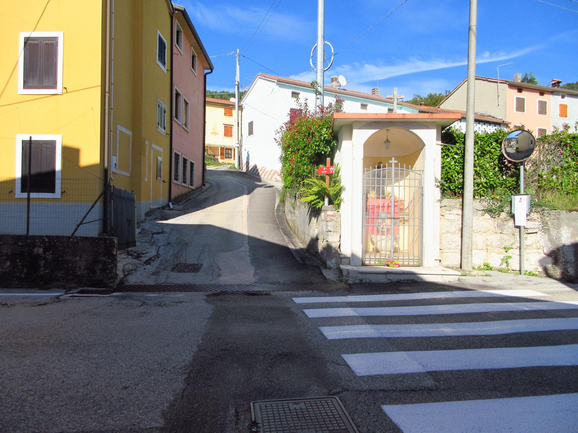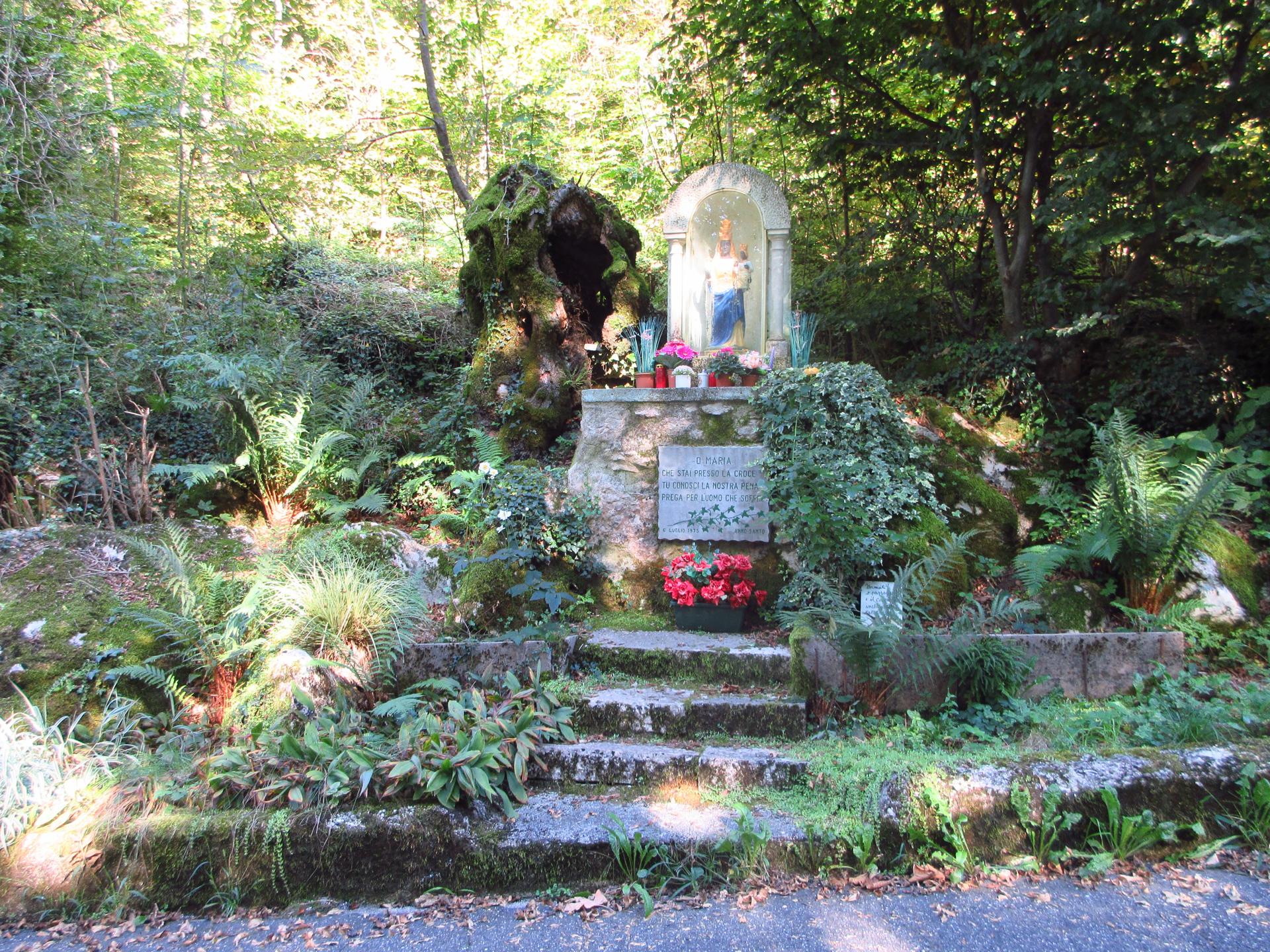 Raggiunto il capitello, si abbandona la strada asfaltata e si imbocca il sentiero di fronte che conduce verso contrà Bastianelli.