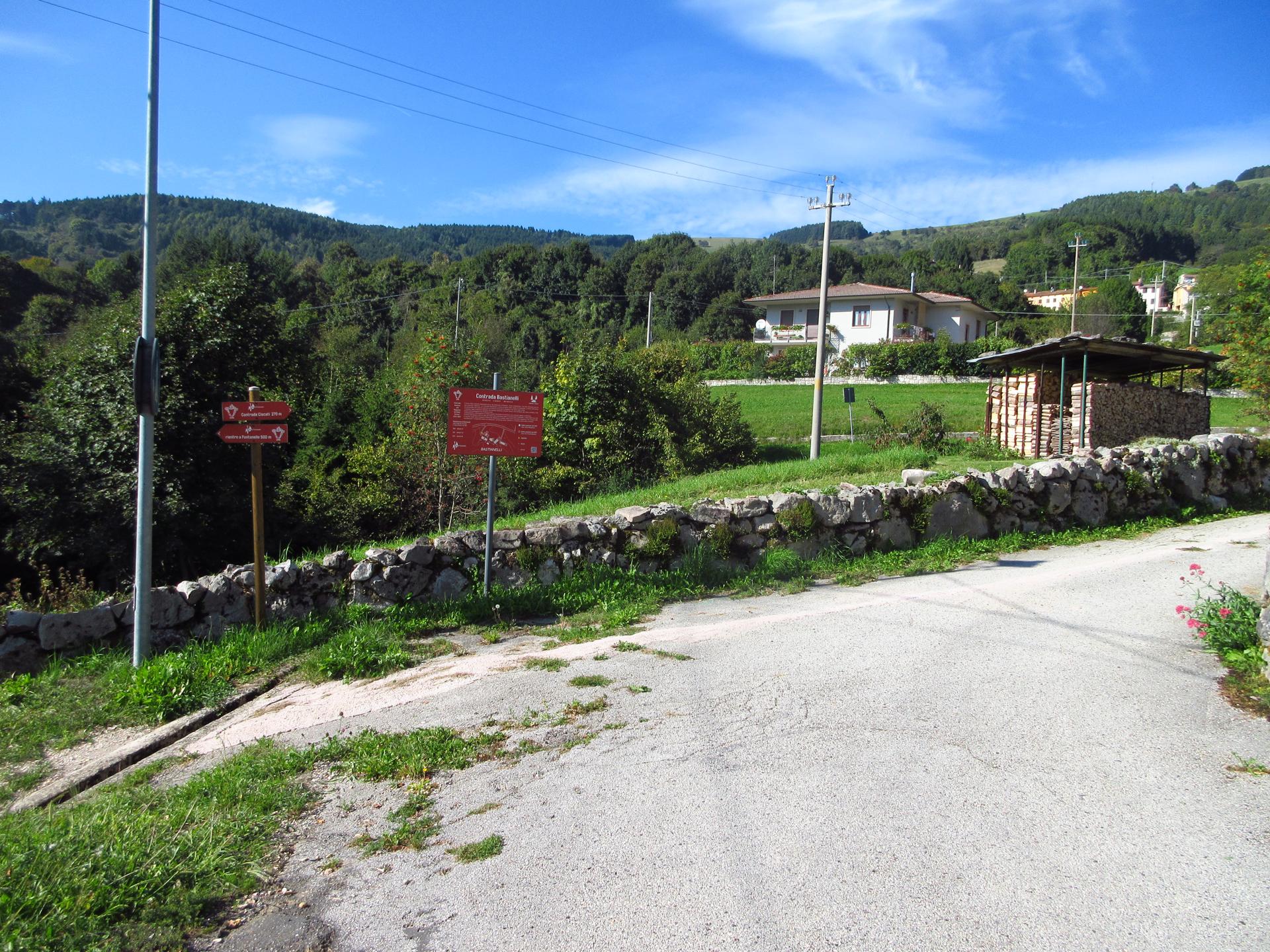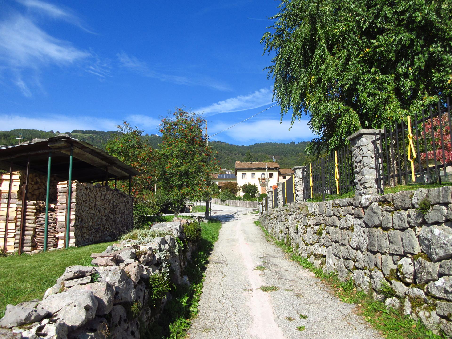Seguendo il sentiero che passa dietro la casa, si raggiunge la strada principale della contrada, che va nuovamente attraversata per proseguire in direzione della “Val de le Pomare”.