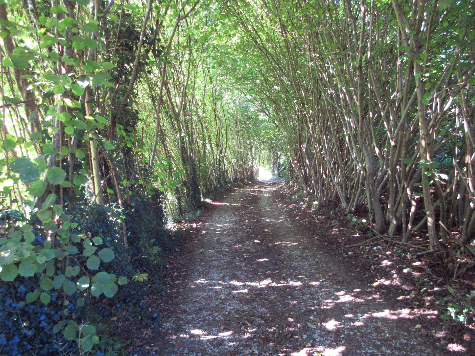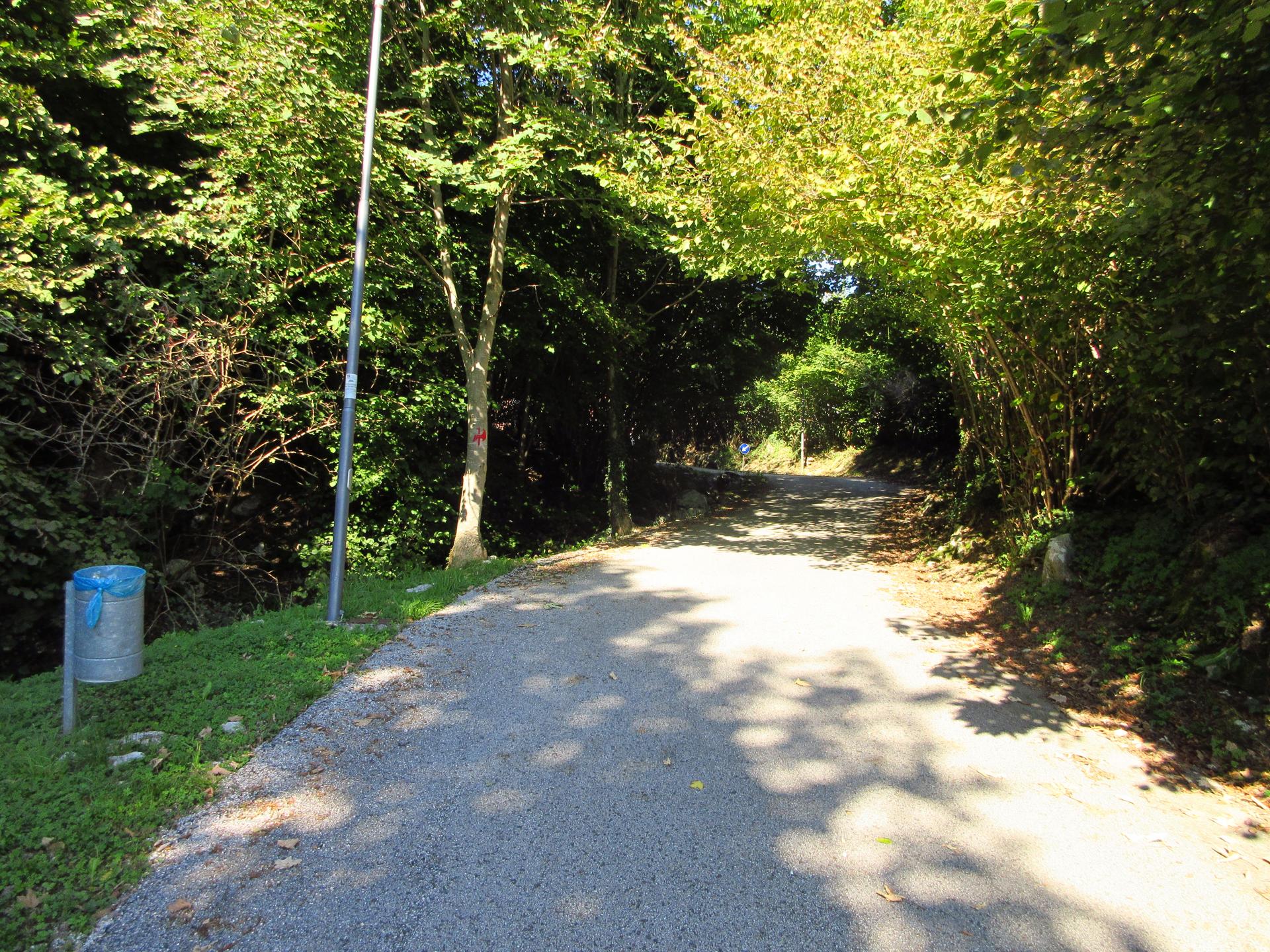 Superato il prato, il percorso si addentra in un suggestivo camminamento nel bosco, dove l’ombra degli alberi accompagna per un tratto tranquillo e silenzioso.