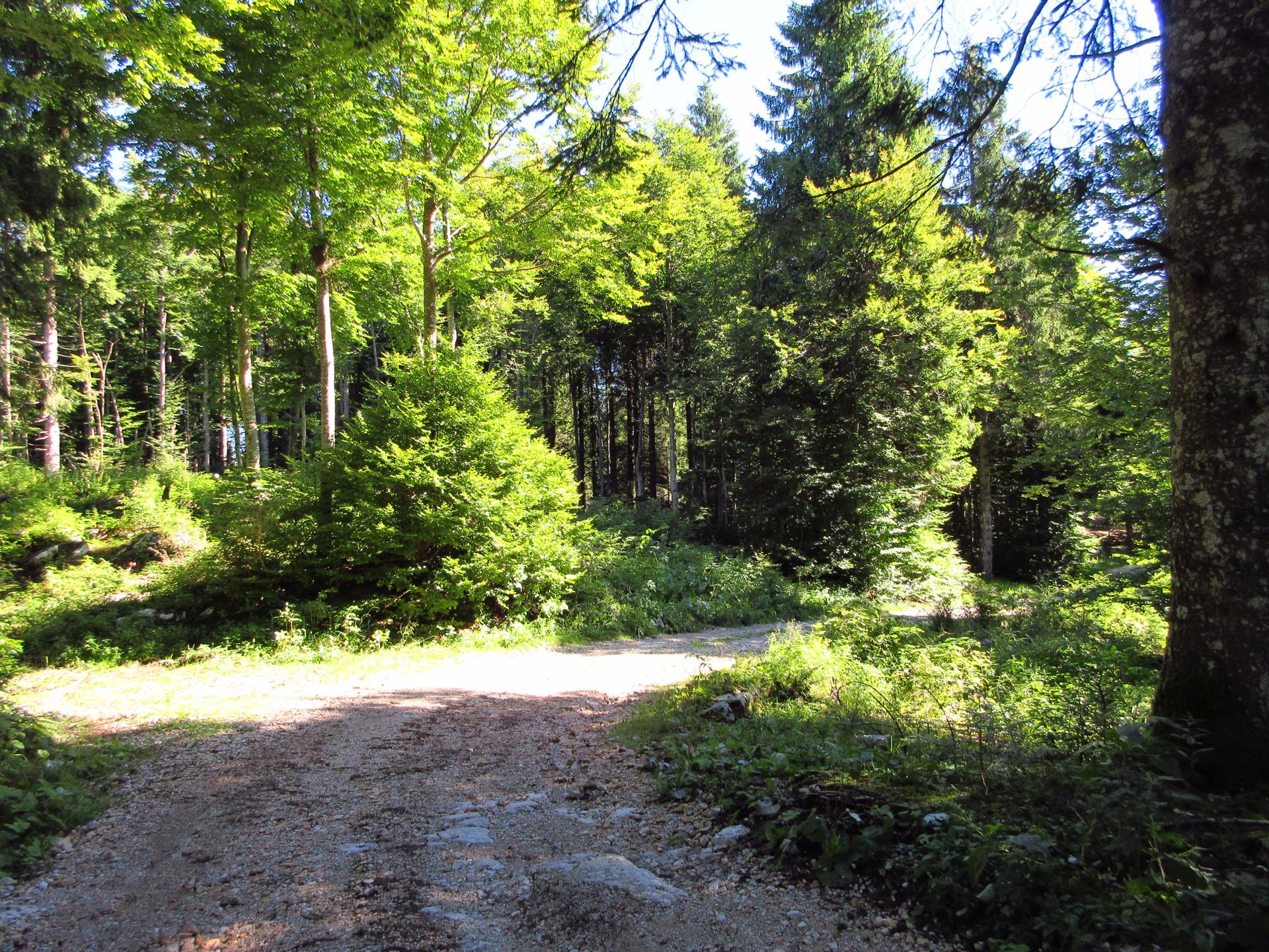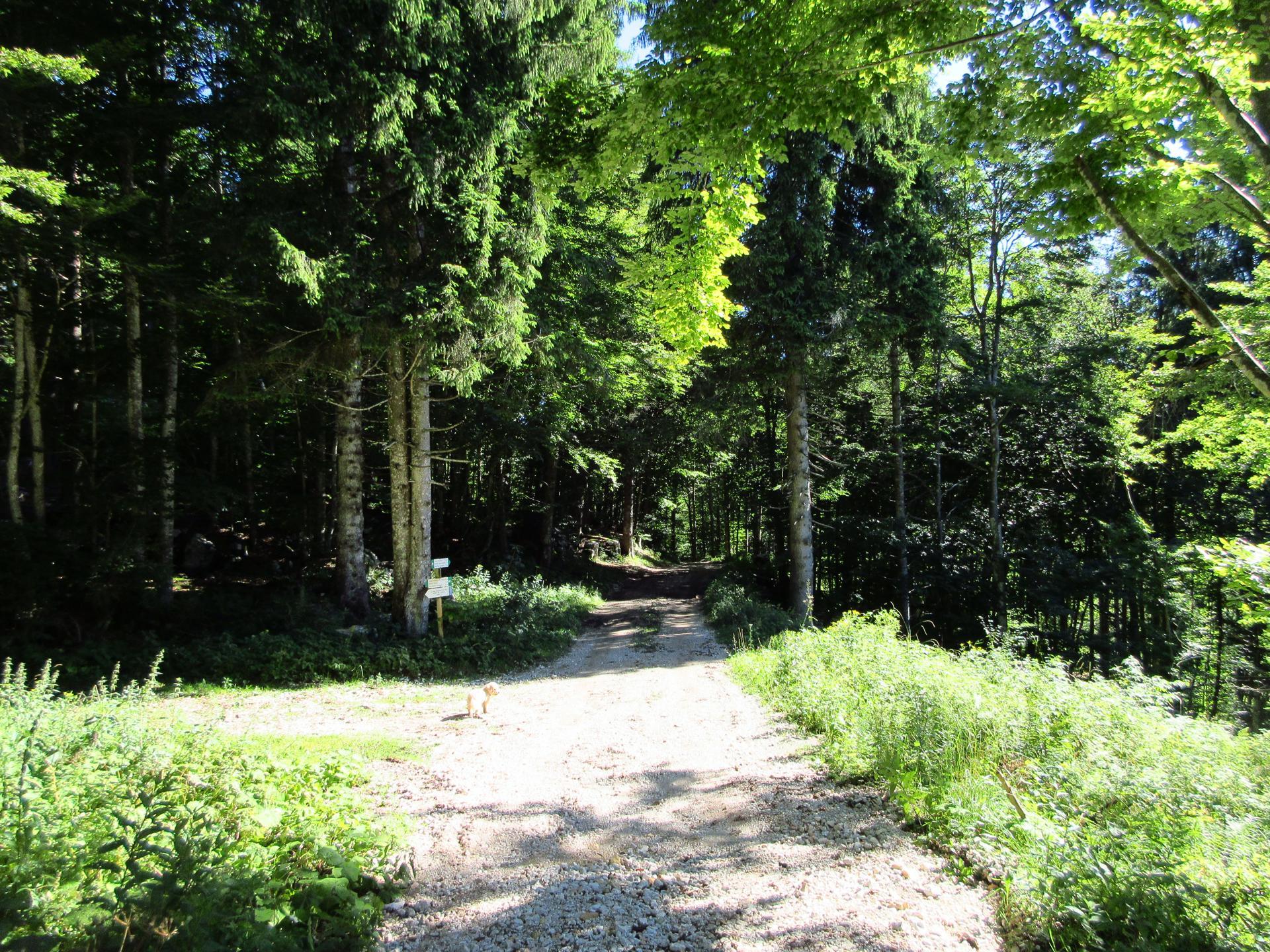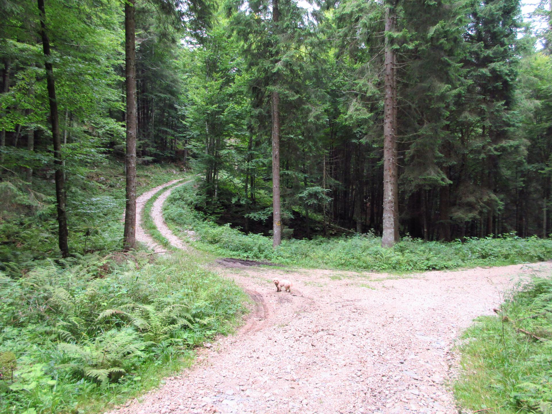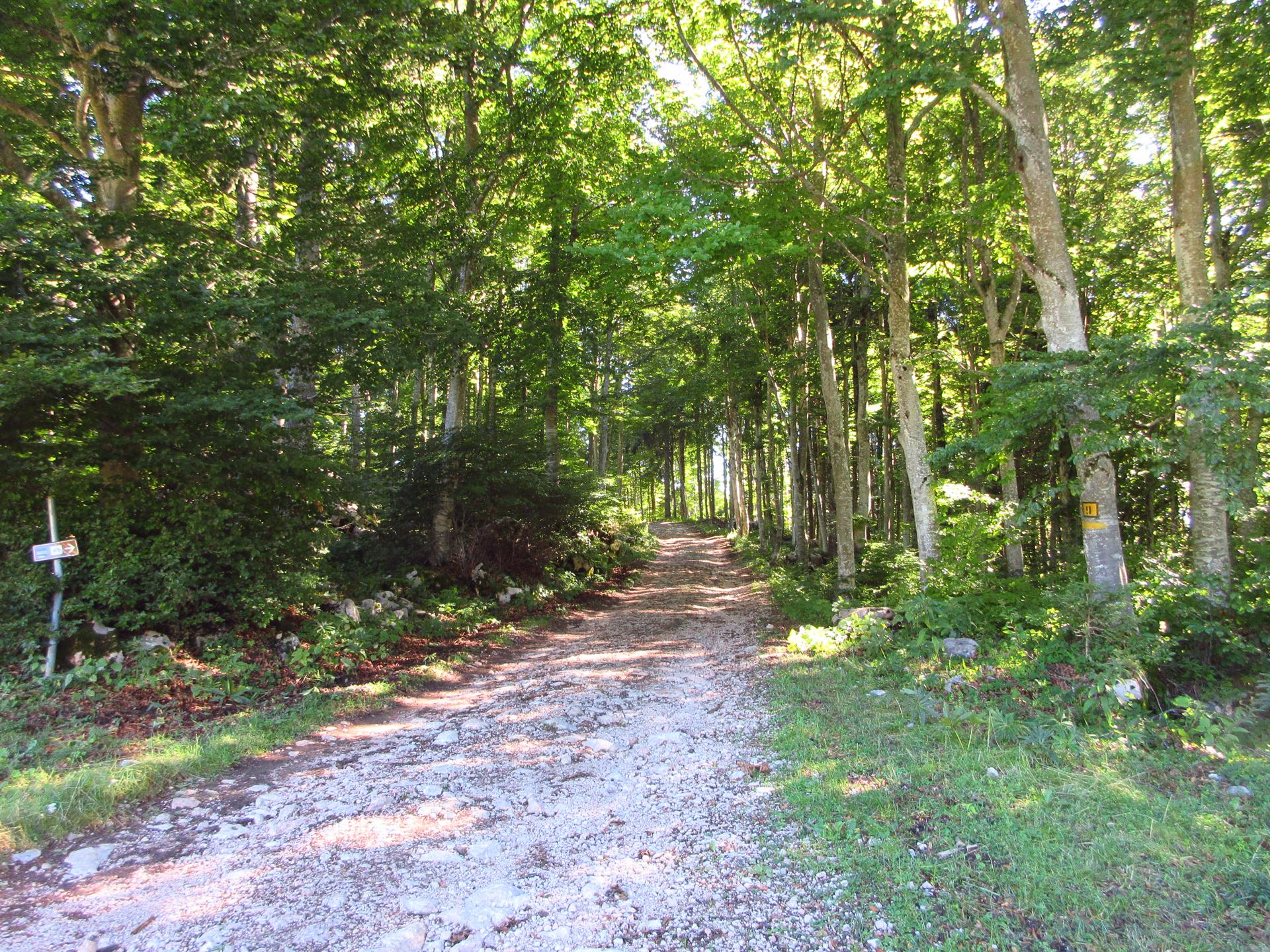 Si rientra nel bosco e si segue sempre la strada principale. Nei due incroci successivi si prosegue sempre sulla destra.