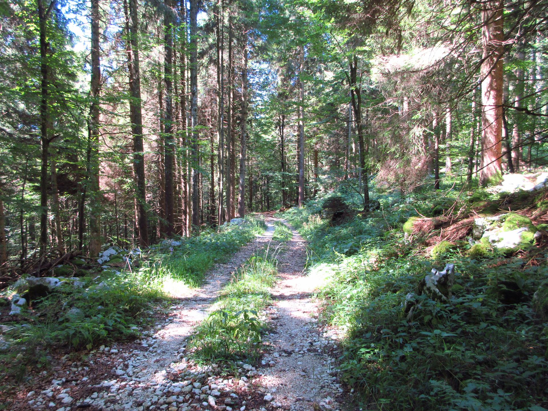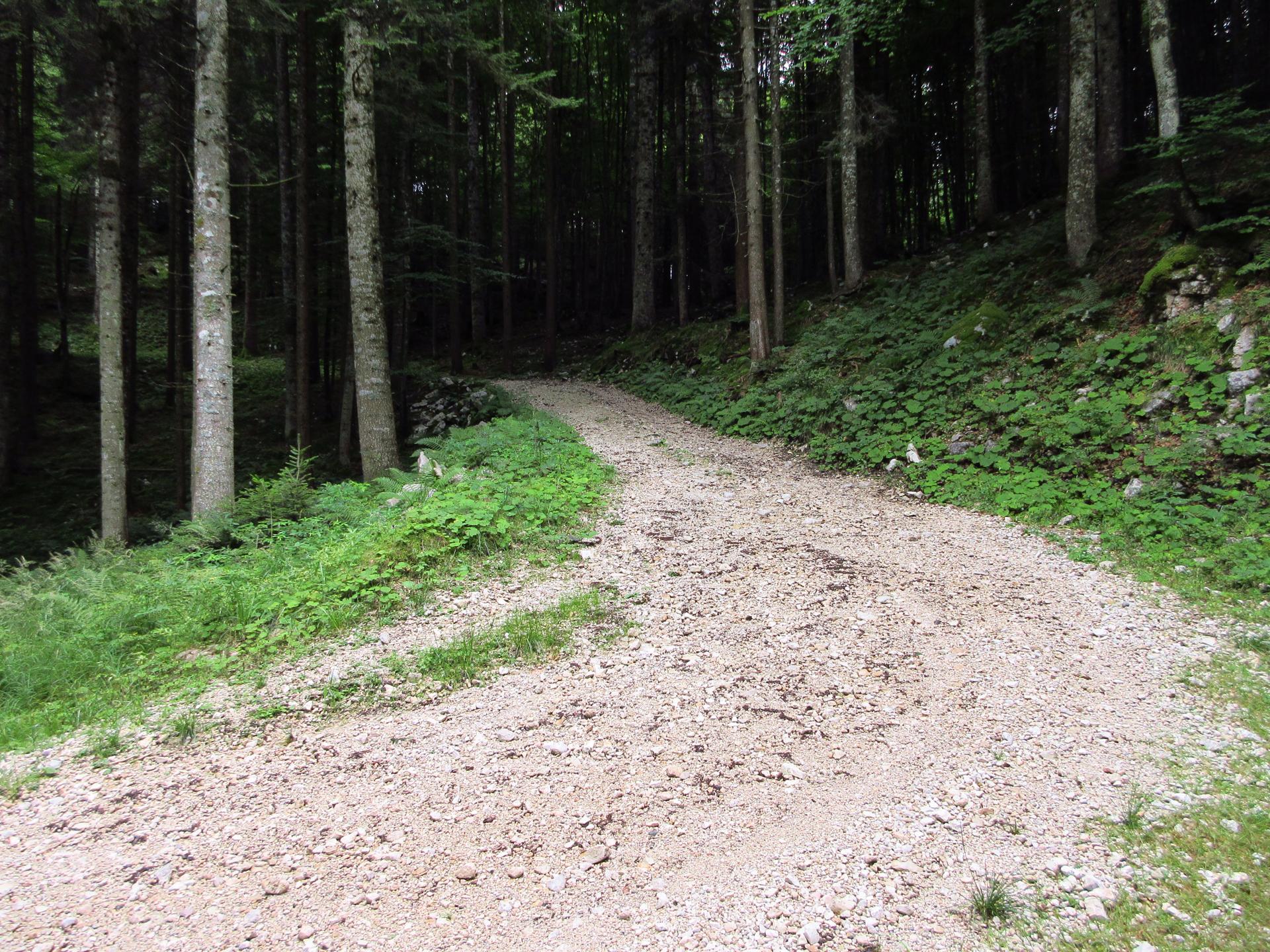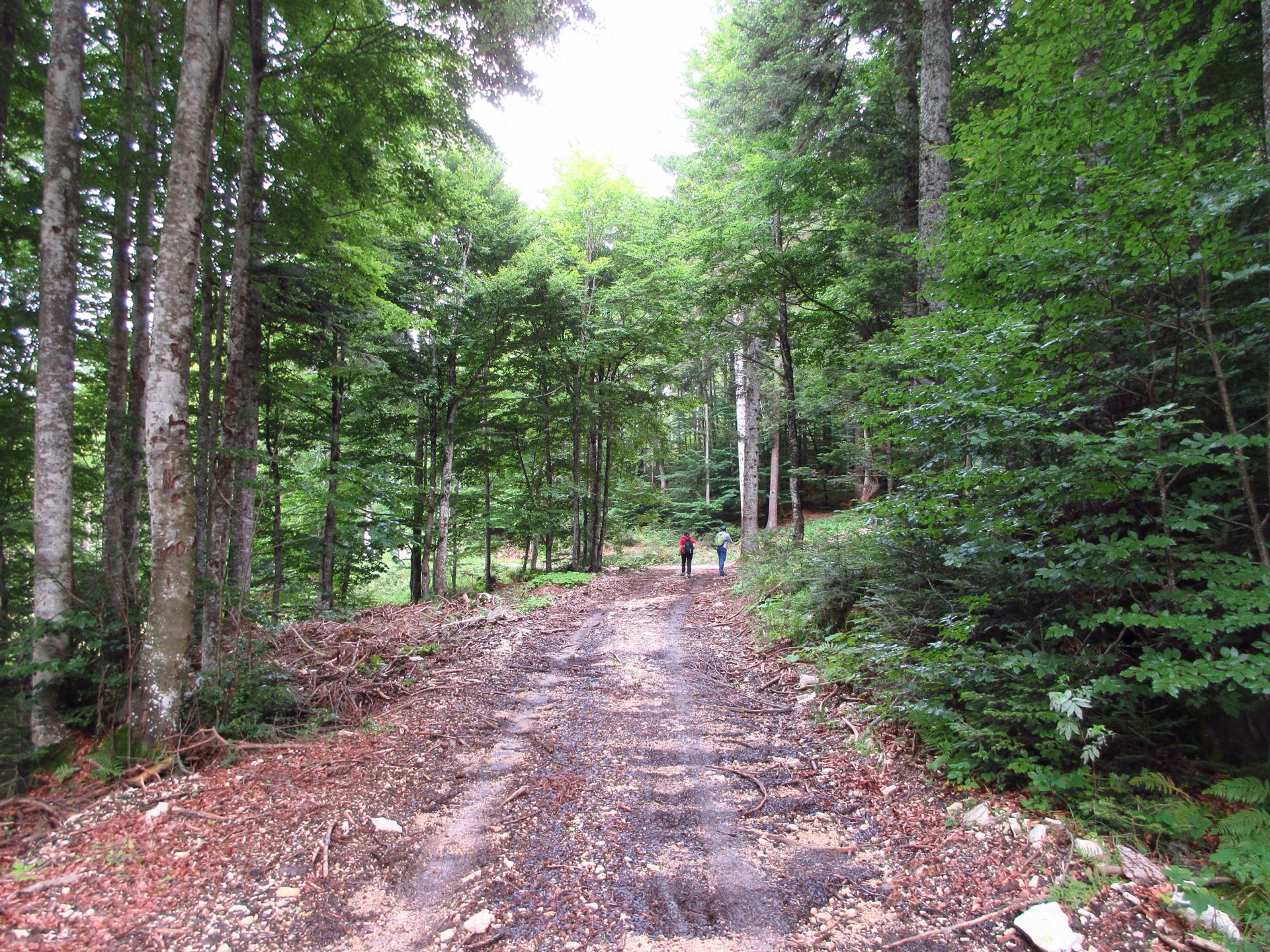 Si rientra nel bosco e si segue sempre la strada principale. Nei due incroci successivi si prosegue sempre sulla destra.
