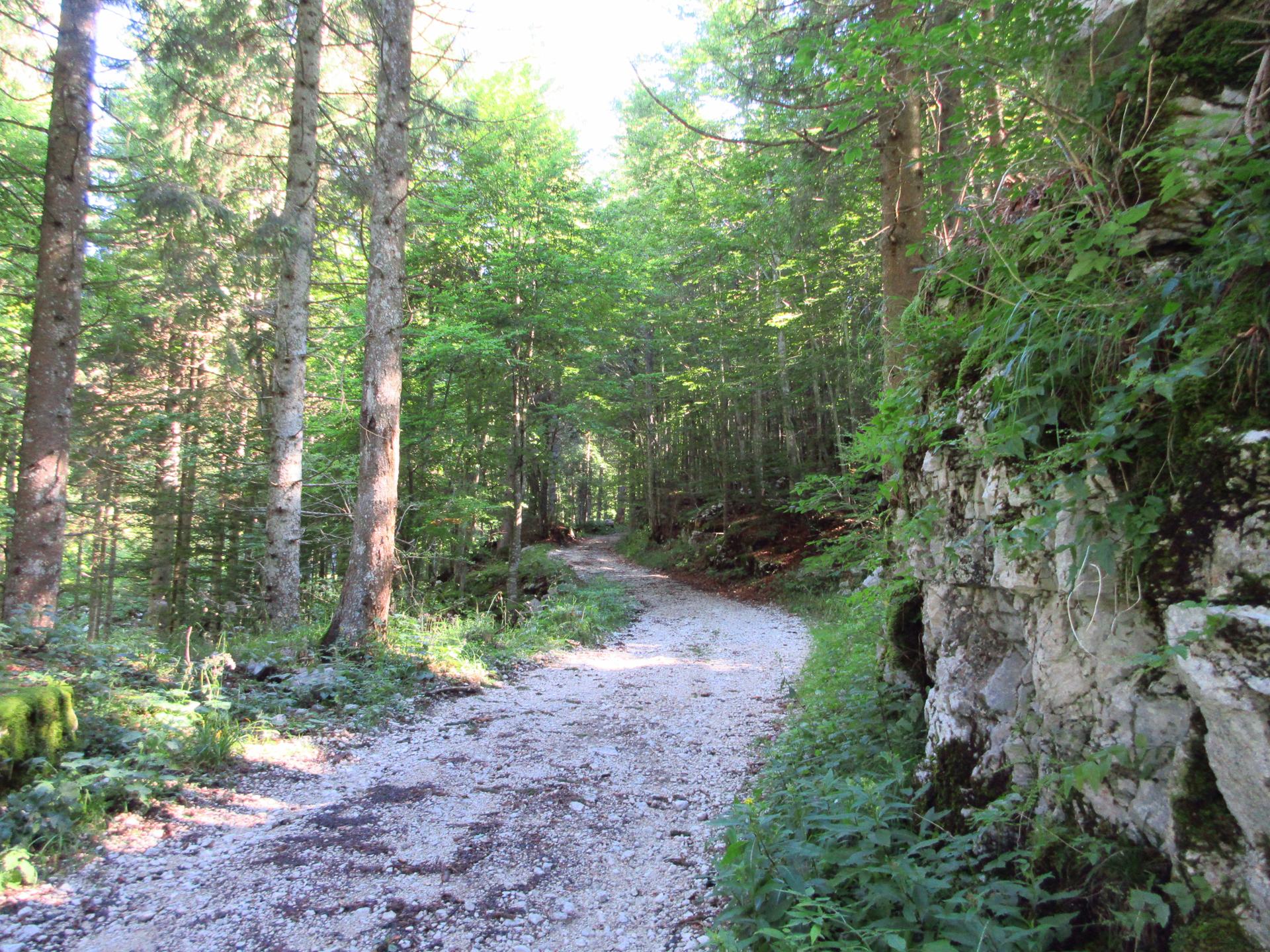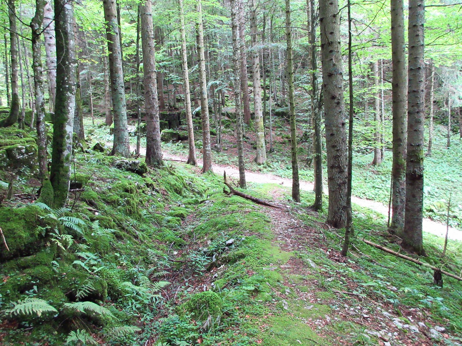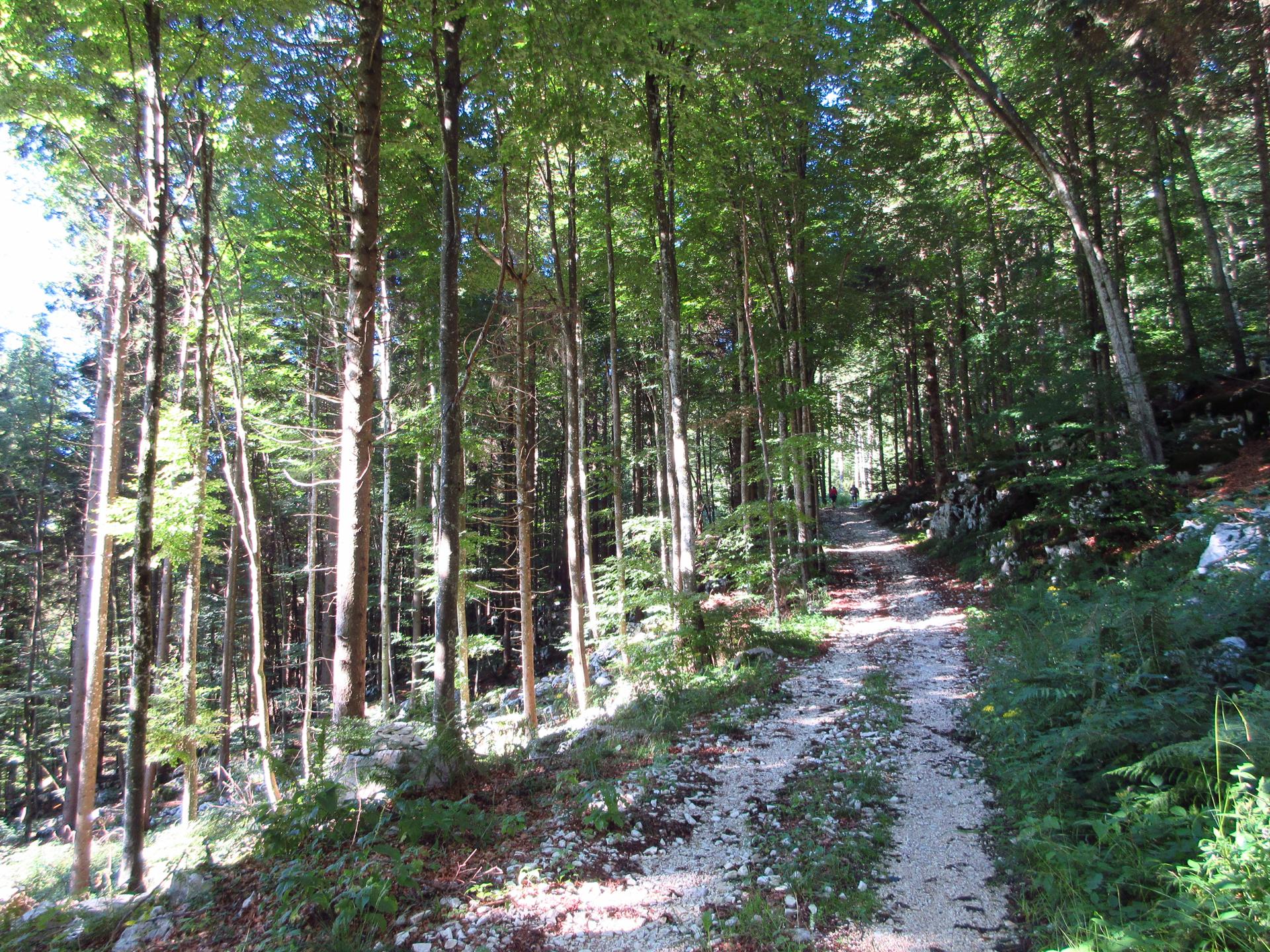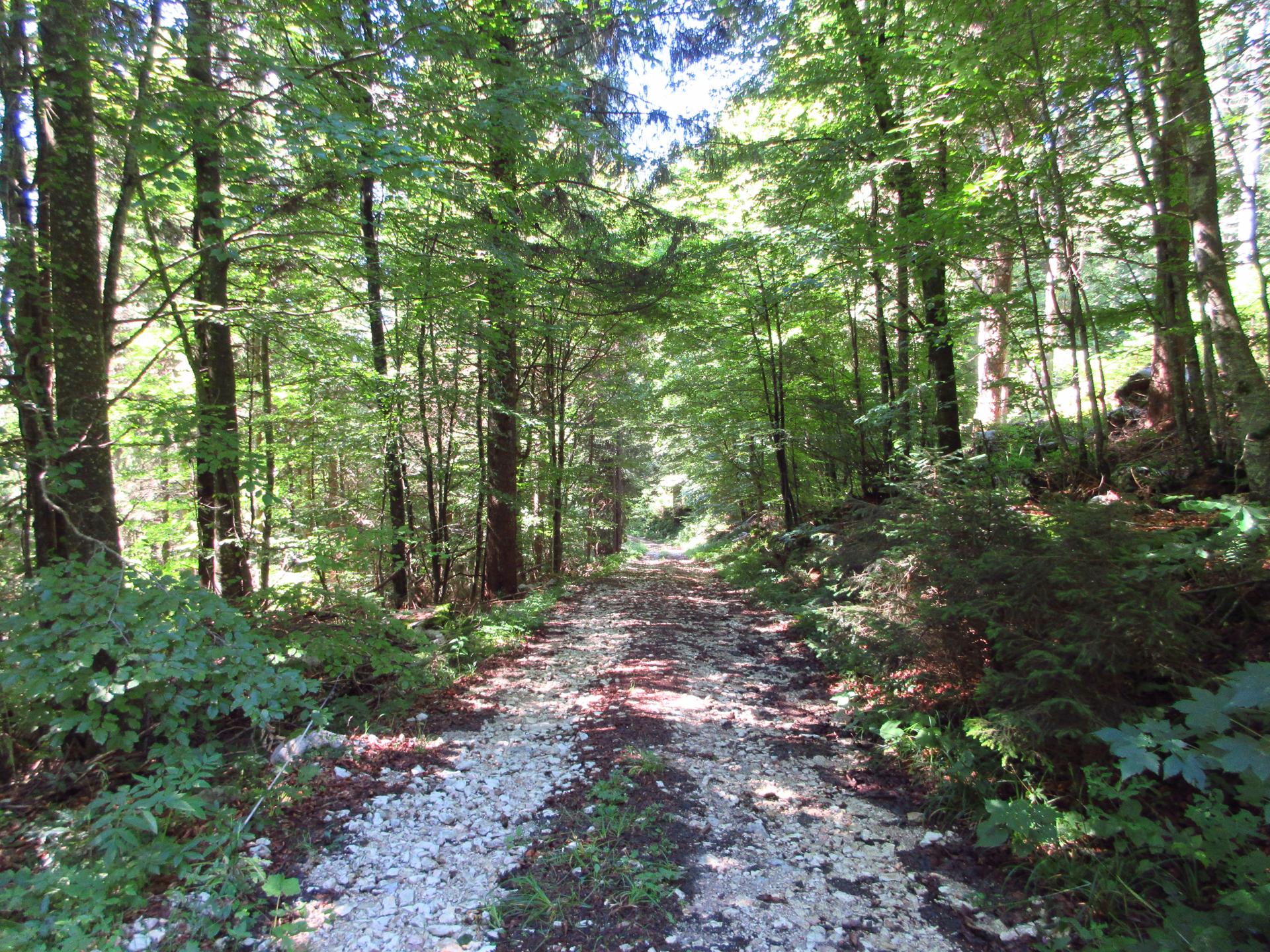 Si rientra nel bosco e si segue sempre la strada principale. Nei due incroci successivi si prosegue sempre sulla destra.