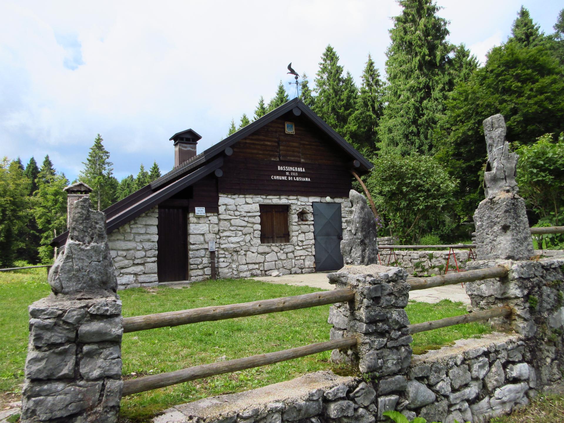 Ad una radura si passa nei pressi del bellissimo bivacco Rossingroba per poi proseguire dritti.