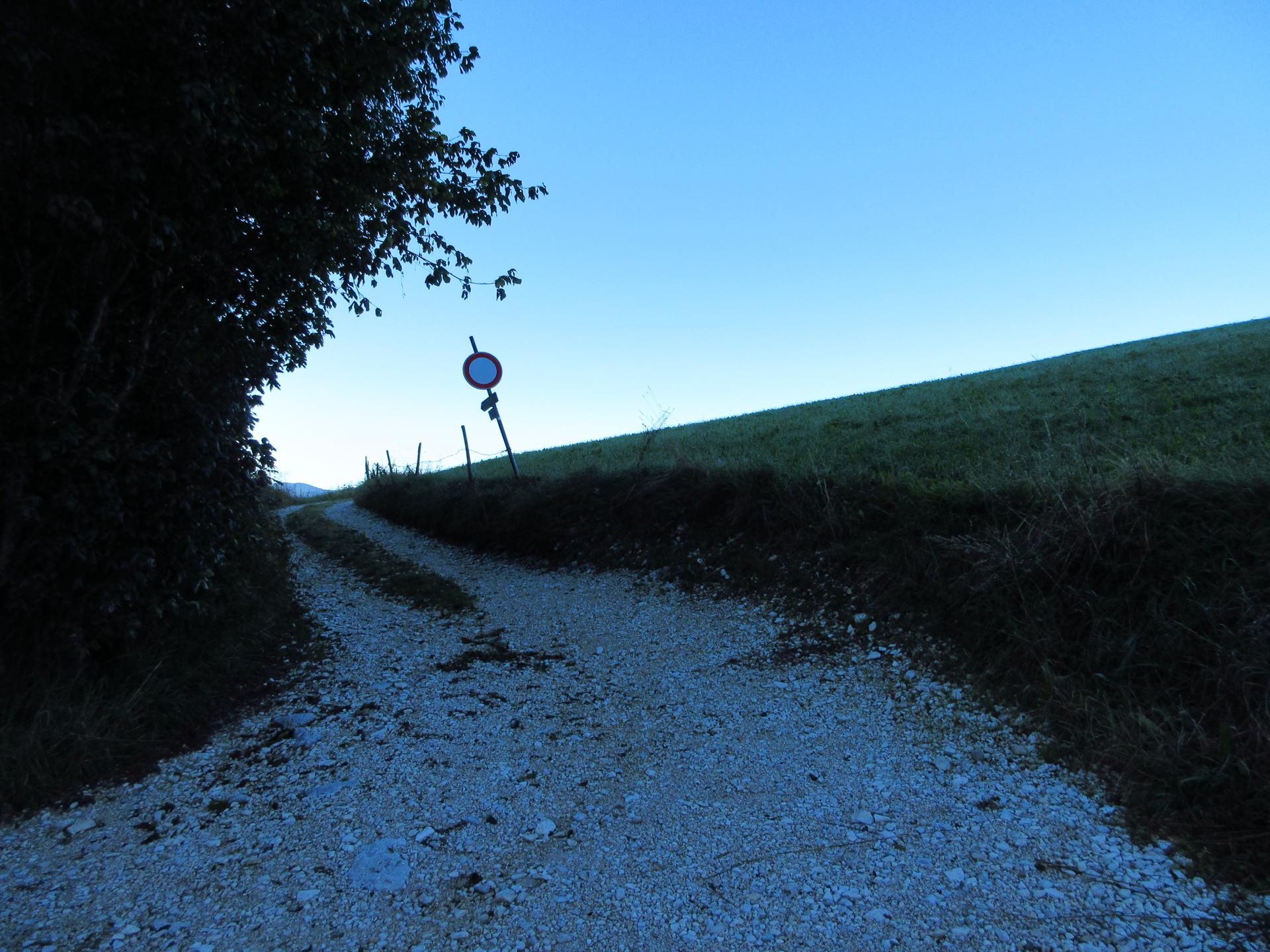 Imboccata la strada, dopo una ventina di metri si incontra un nuovo incrocio, ma è sufficiente proseguire dritto.