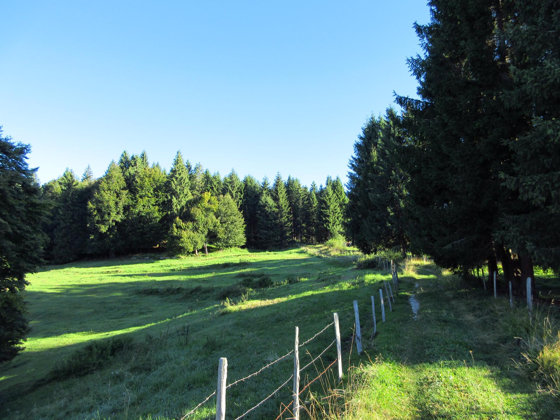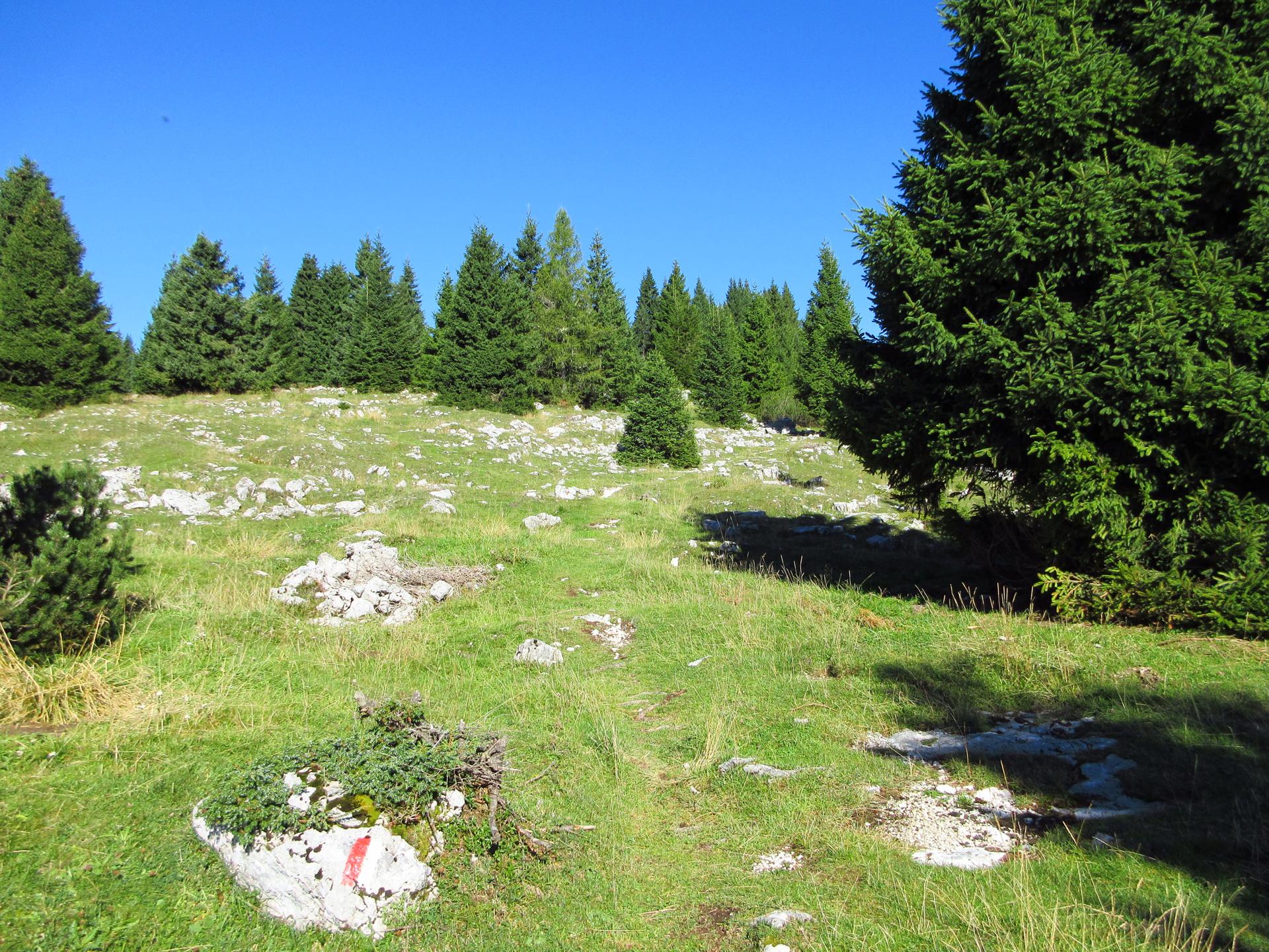 Il percorso continua sui prati del monte, seguendo sempre i segnavia bianco-rossi.