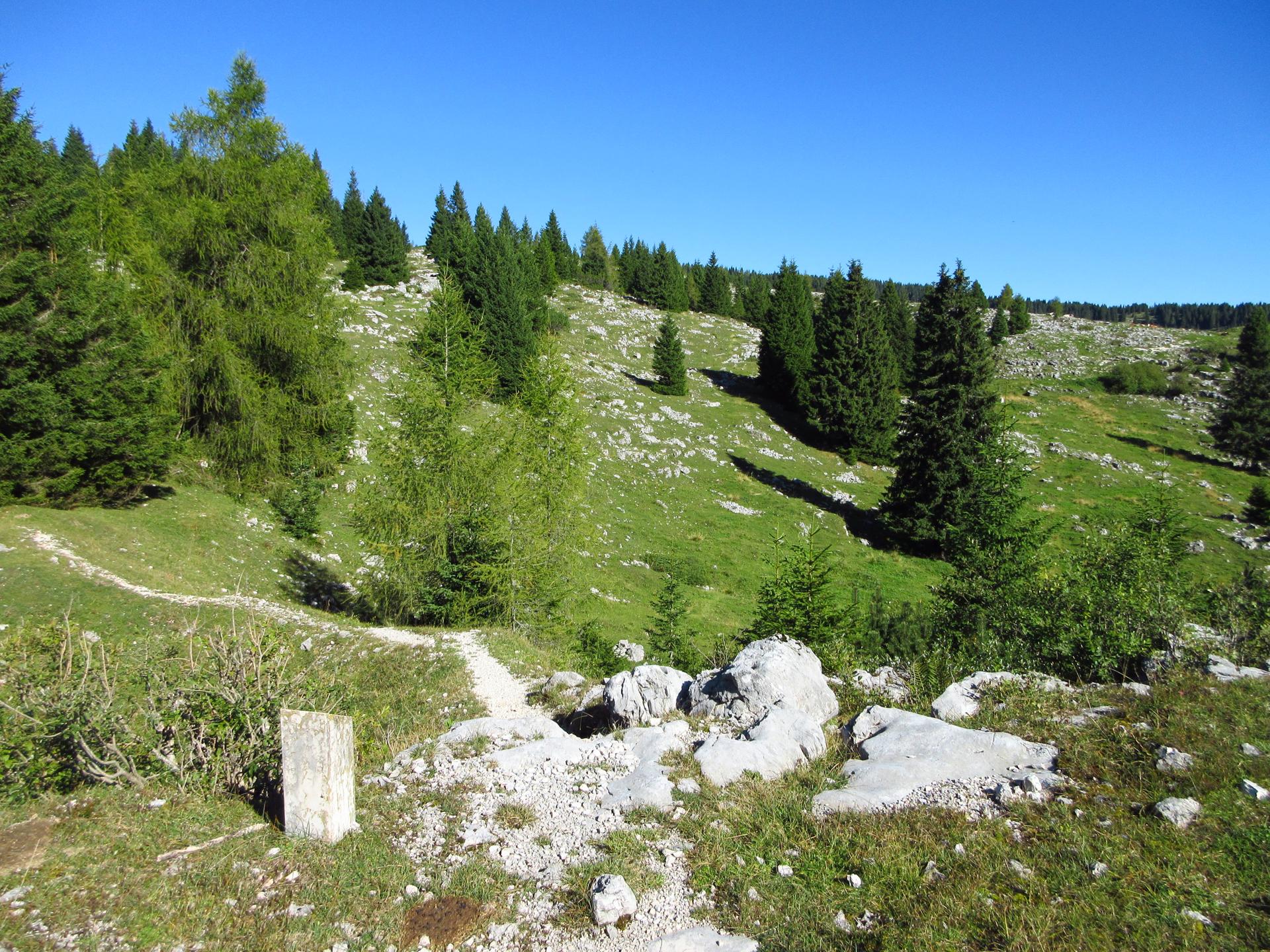 Dalla lapide si ritorna sui propri passi e si scende in direzione della malga.