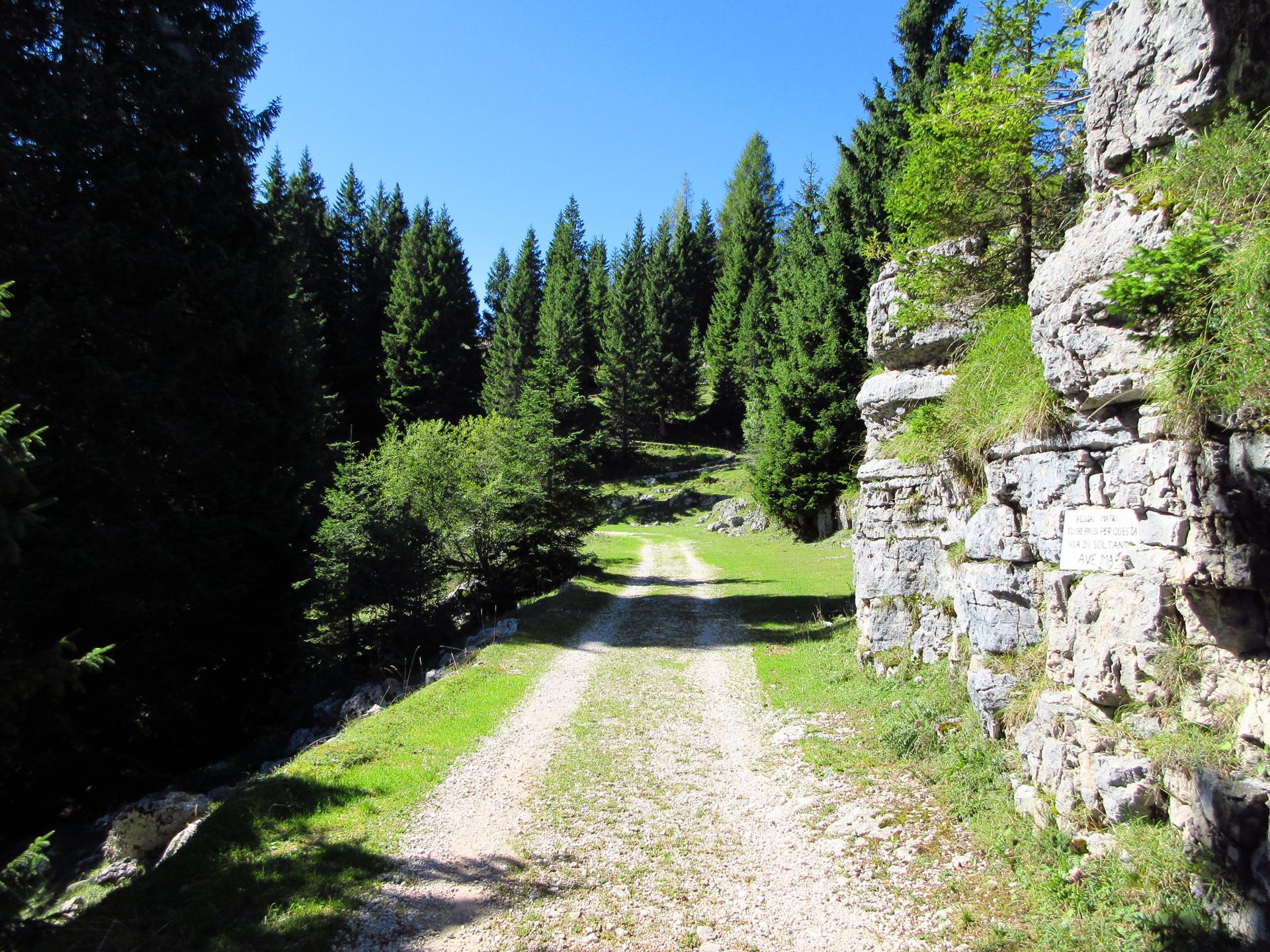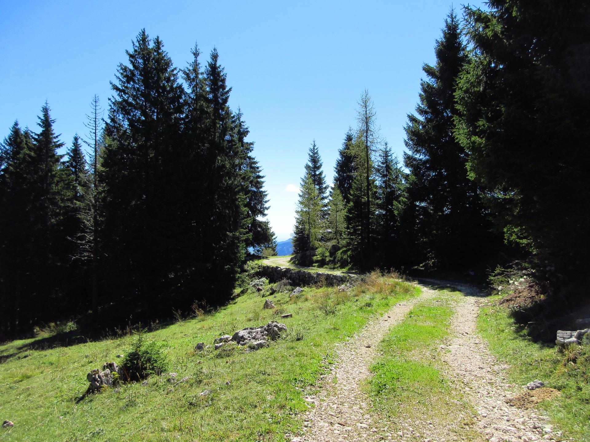 Raggiunta la strada della malga, si prosegue a sinistra in direzione sud-ovest.