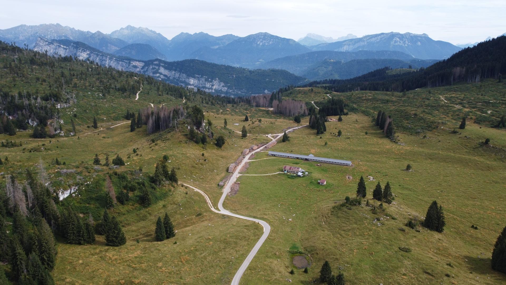 Vista dal drone della piana di inizio percorso