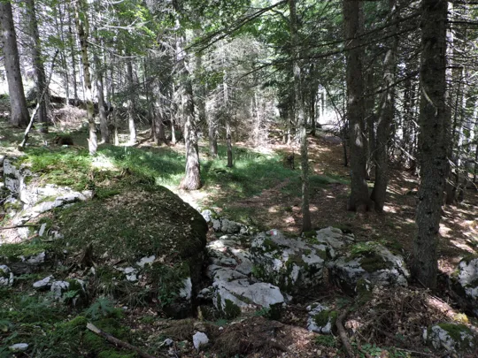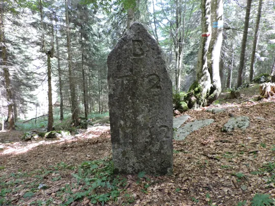 Il sentiero prosegue dentro un bellissimo bosco per circa un chilometro e mezzo fino ad arrivare nei pressi del cippo nr.2 dove proseguendo a destra arriviamo in breve a destinazione.