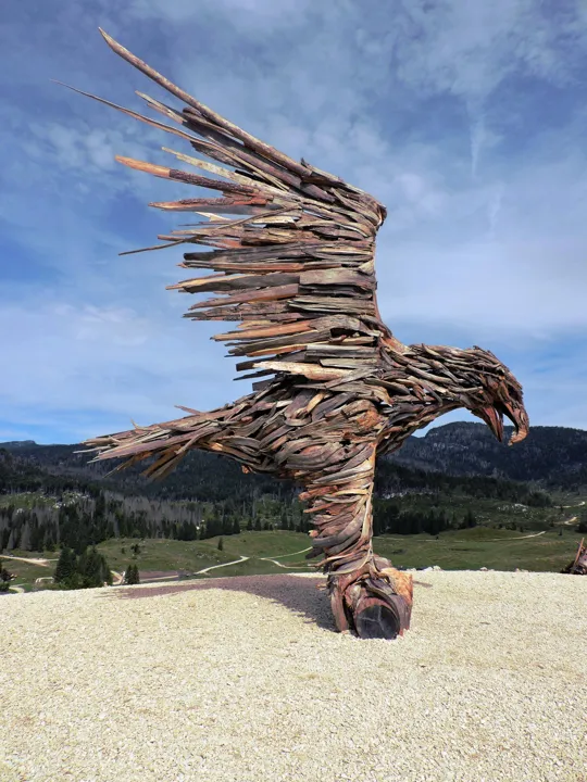 L'aquila in legno più grande d'Europa. Grande come la devastazione che ha colpito le nostre montagne e il nostro amato altopiano. Nel 2018 la piana di Marcesina è stata scenario del cantiere forestale più esteso di tutto l'arco alpino ...