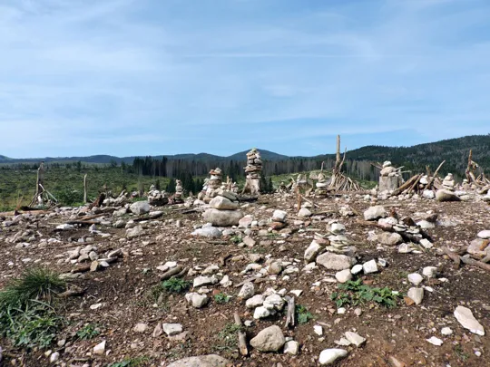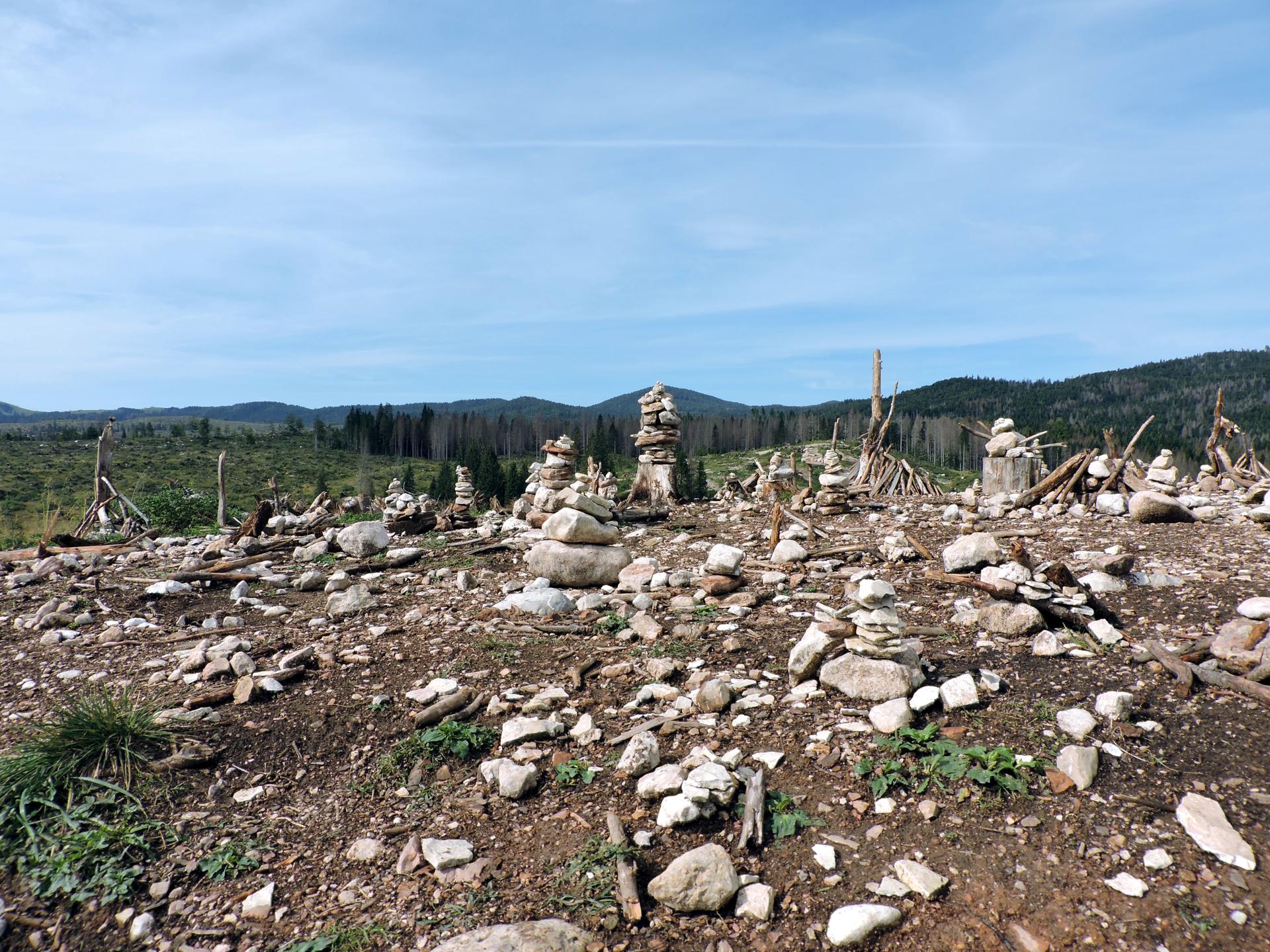 Molto particolare questa piantagione di sassi impilati ed altre strane strutture ...