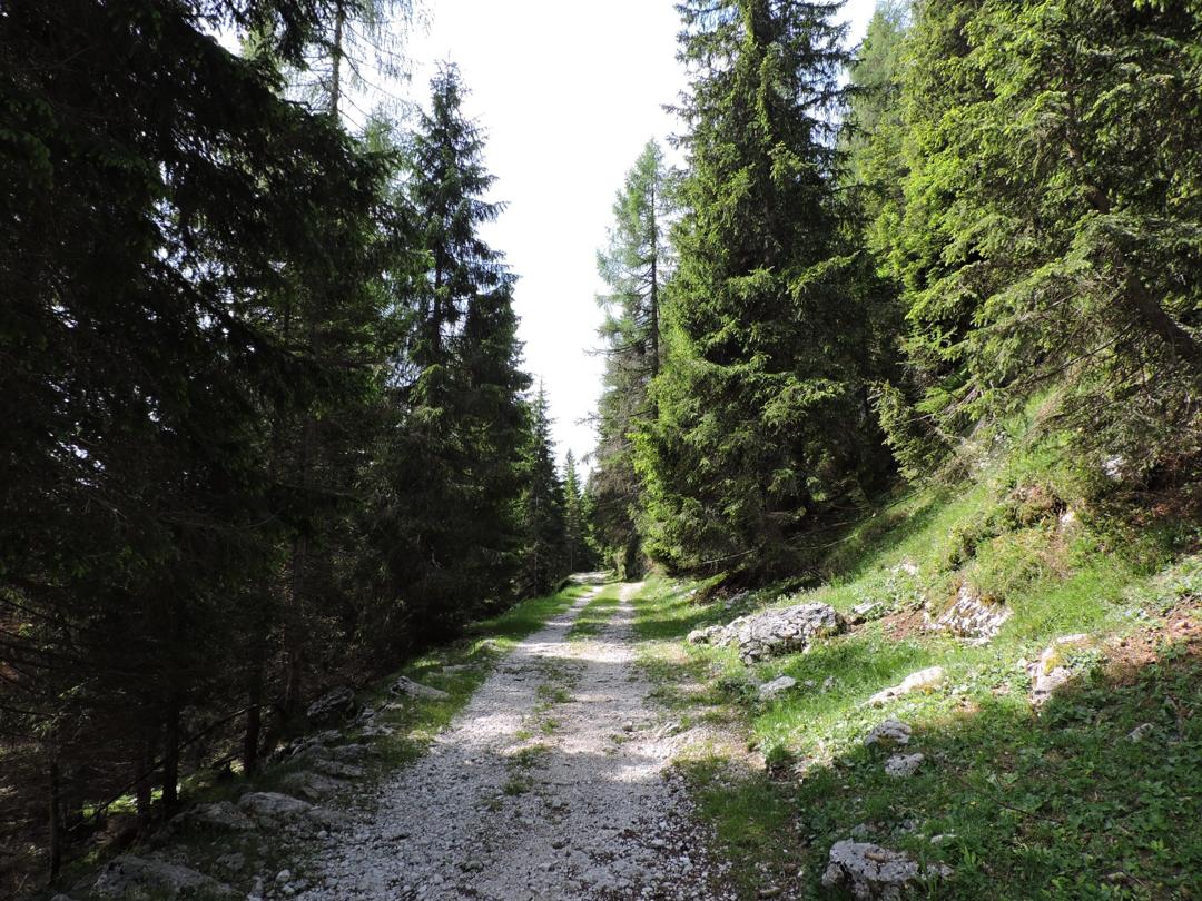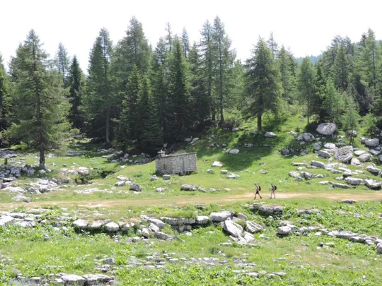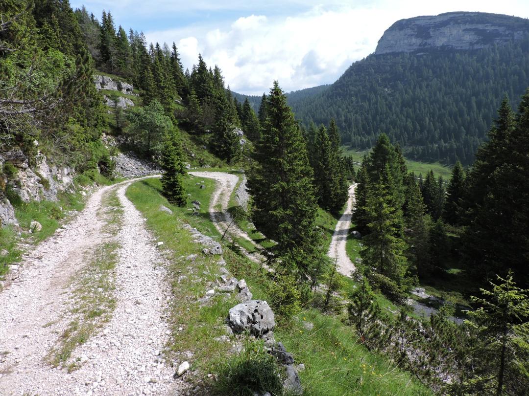 Continuando a scendere si intravede il bivacco e finalmente il sentiero 830. Arrivati al sentiero andiamo a destra sempre in discesa fino ad incontrare a Busa della Pesa la strada principale e proseguendo sulla stessa si arriva agevolmente al punto di partenza.