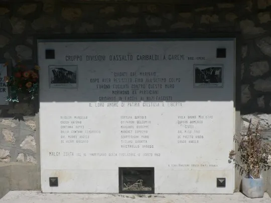 All'inizio della strada che porta a Base Tuono si trova una malga monumento a ricordo di un eccidio perpetrato durante la Seconda Guerra Mondiale.