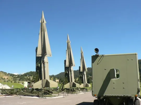 I tre missili Nike-Hercules sulle rampe testimoniano i rischi corsi dall'umanità.
