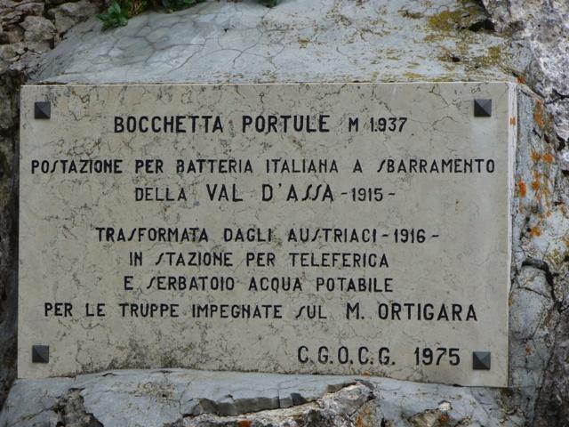 Nel 1916 a fianco della Bocchetta era stata realizzata una batteria in caverna per pezzi da 120 mm (affidata poi al Cap. Marco Guidelli) col compito di interdire la strada della Val d'Assa. Tale batteria costituiva uno dei pochi lavori apprezzabili realizzati sulle linee successive della difesa dell'Altopiano. Ciò nonostante il tiro dei suoi pezzi non risultò particolarmente efficace e la batteria cadde quindi in mano austriaca il 23 maggio quando gli uomini del 26° Schutzen occuparono Cima Portule e giunsero quindi fino alla selletta. Vano fu il tentativo di opporre un'estrema resistenza trascinando un pezzo all'aperto e tirando schrappnel contro gli austriaci che scendevano dalla cima. Una volta occupata dagli austriaci, la sella venne fornita di una magnifica strada dedicata al principe Rutenio (Prinz Eugen Strasse) e attraversata da ben due funivie. La galleria che aveva fornito il ricovero e le camere di combattimento dei pezzi italiani divenne la sede delle vasche di raccolta dell'acqua pompata dal fondo della Val d'Assa e destinata a dissetare le truppe dislocate in tutta la parte nord orientale dell'Altopiano. Da qui passava la maggior parte del traffico e dei rifornimenti destinati alla imponente base logistica di Campo Gallina.