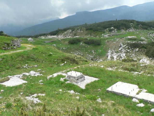 Il monumento della Eugen strasse e uno dei tre ingressi del deposito munizioni (si trova a circa 100 mt dal trivio in direzione Campo Gallina).
