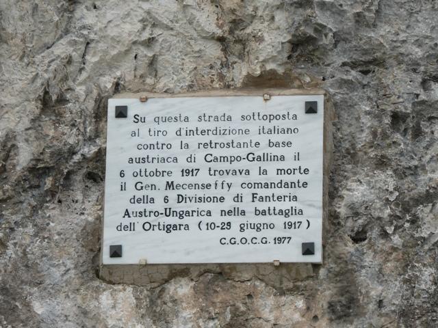 Selletta Mecenseffy. Una lapide ricorda il tragico momento della perdita di un grande generale.