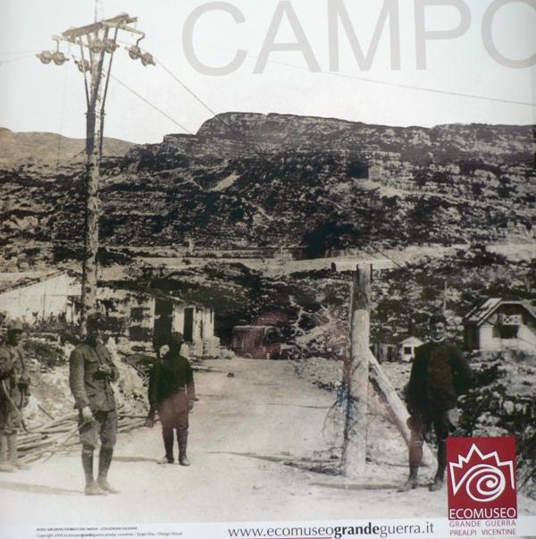 Dopo la costruzione nel giugno del 1916 della Eugen strasse e la successiva realizzazione della Karl Strasse e della Zoviello strasse, il trivio dei Monumenti divenne un punto nevralgico del sistema logistico della 6° Divisione di fanteria austro-ungarica. Qui terminava la teleferica da campo n.14 proveniente dalla Val d'Assa e transitava la teleferica n.13 diretta a Campo Gallina. Oltre a numerosi baraccamenti lungo la Karl strasse venne scavata dai reparti del Genio una imponente caverna, con tre entrate, destinata a deposito munizioni. A sud del trivio venne realizzato un piccolo cimitero.