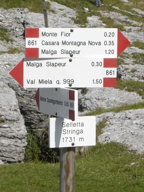 Arrivati a Selletta Stringa sulla destra si trova il Monte Fior con le sue incredibili trincee a linea greca, mentre sulla sinistra si prosegue verso il cippo del Monte Castelgomberto. Un cippo, alla medaglia d'oro Guido Brunner volontario di guerra e irredento, ricorda la resistenza Italiana contro l'avanzata nemica.