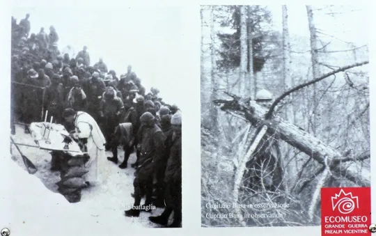 "...Alpini di Castelgomberto, noi lo sappiamo tutti, nevvero, che il nemico noi lo abbiamo respinto, che sconvolse con le sue artiglierie le trinceette basse, e tentò di sorprendere le nostre guardie. Ma il nemico ha rotto i fianchi più deboli, le truppe sulla nostra destra si arrendono, siamo avvolti e minacciati da tre lati...".