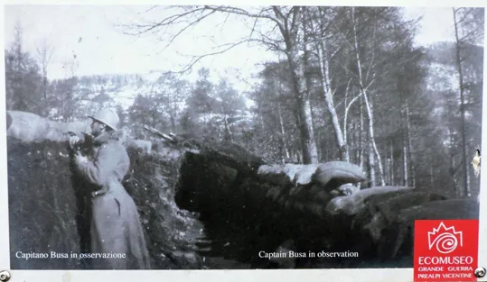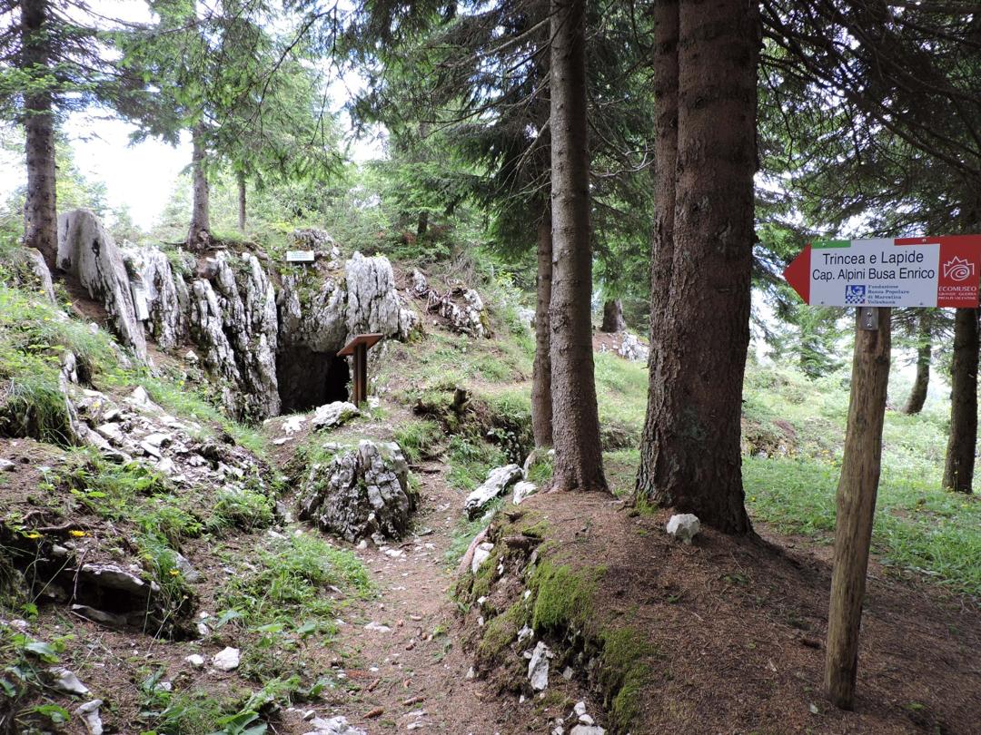 Dalla galleria osservatorio del Generale Turba inizia un percorso ben segnalato che porta in pochi minuti ad un altro osservatorio e alla lapide del capitano Enrico Busa.