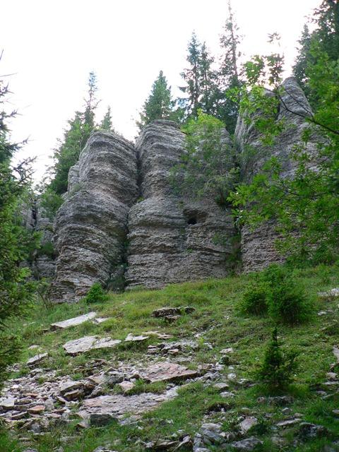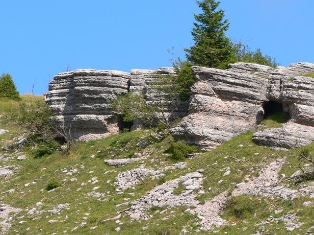 In queste strane rocce, guardando con attenzione, si possono scorgere anche delle finestrelle, ex postazioni della Grande Guerra.