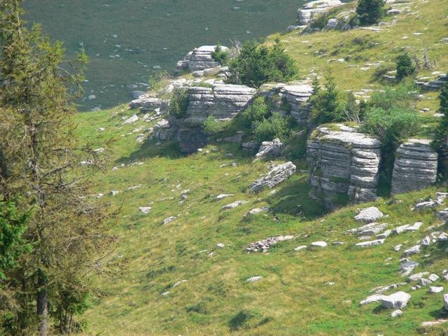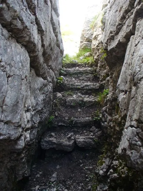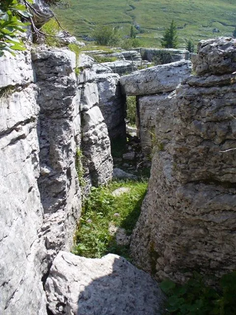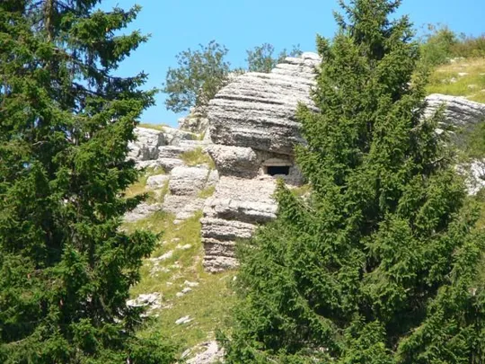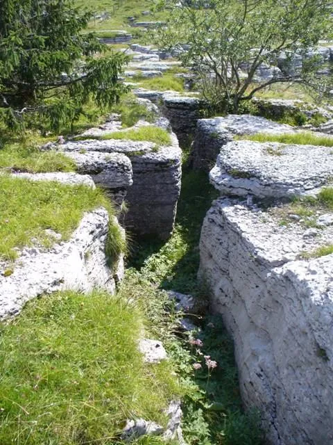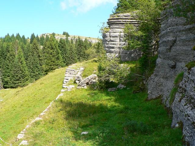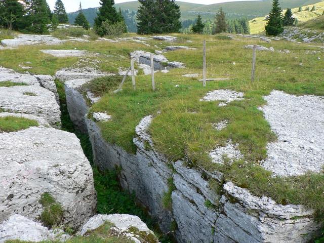 Interessanti trincee Italiane sembrano ricavate nelle spaccature naturali delle rocce, un lungo camminamento protetto con feritoie e postazioni verso Marcesina.