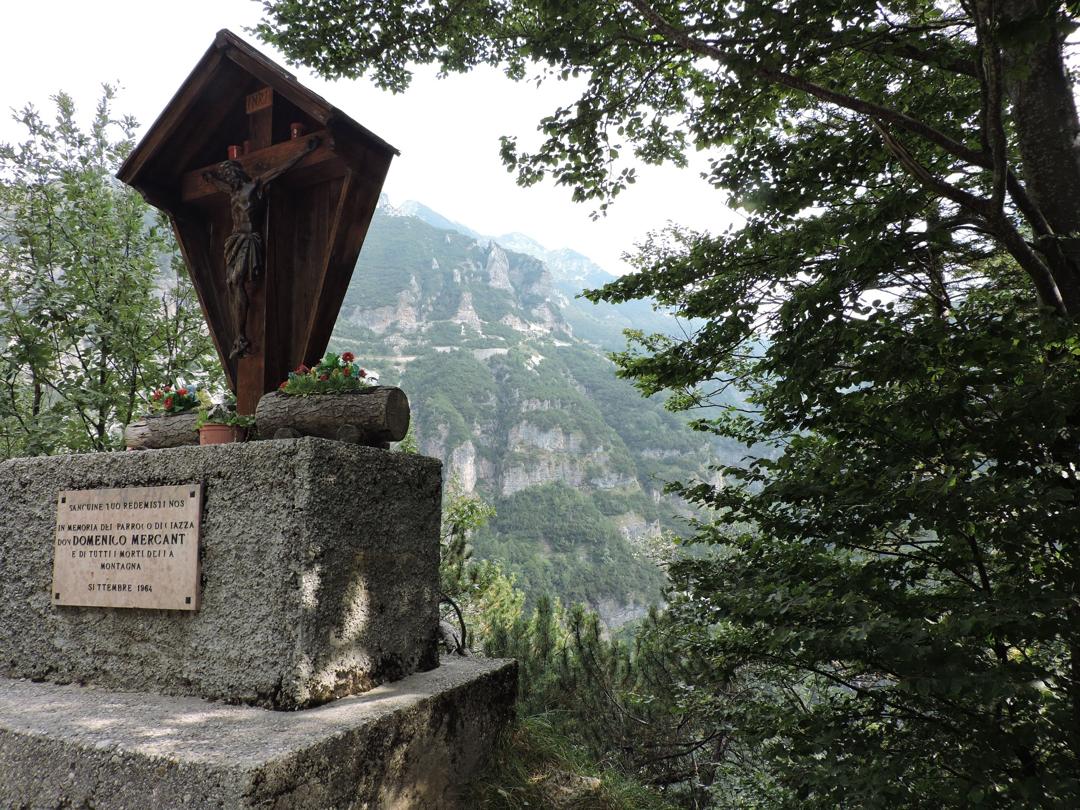 Si incrocia un tornante della strada che porta a rifugio Pertica e dove si trova una croce ricorda il sacrificio di don Domenico Mercante, parroco di Giazza, e del soldato Leonhard Dalla Sega durante la Resistenza. Da qui si ha una vista sul Lago secco, sulla Costa Media del Carega e sulla lontana piana di Campobrun .