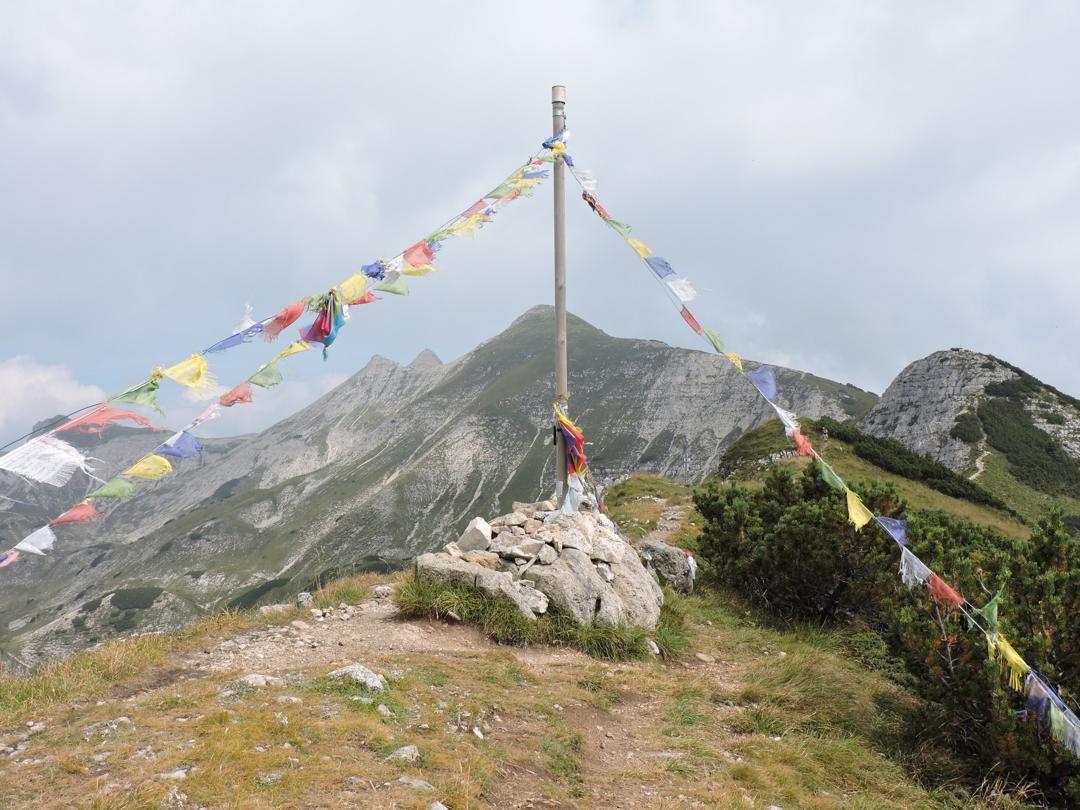 Come segno di solidarietà per i fatti avvenuti in Tibet, questa cima è ornata da alcune bandierine tibetane.
