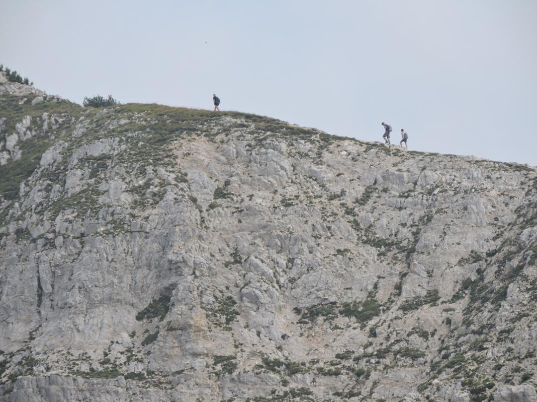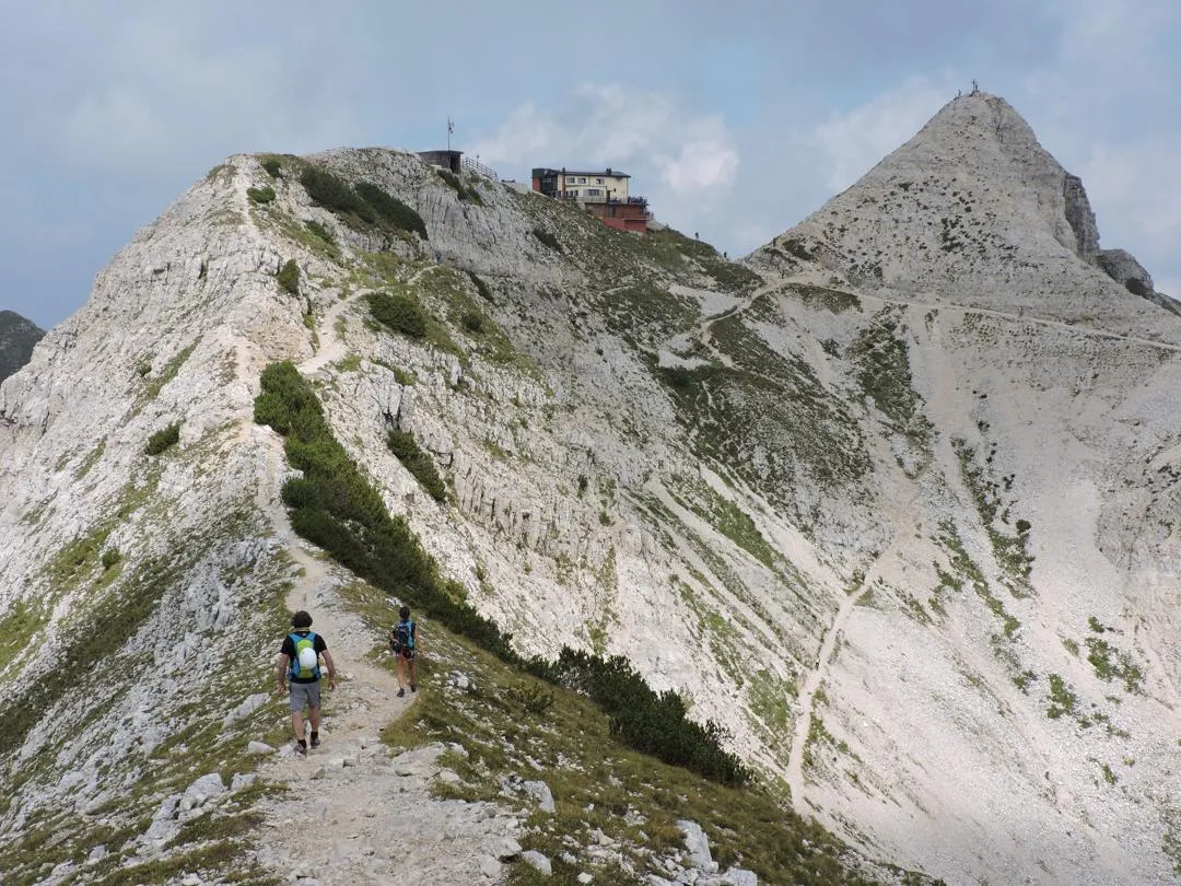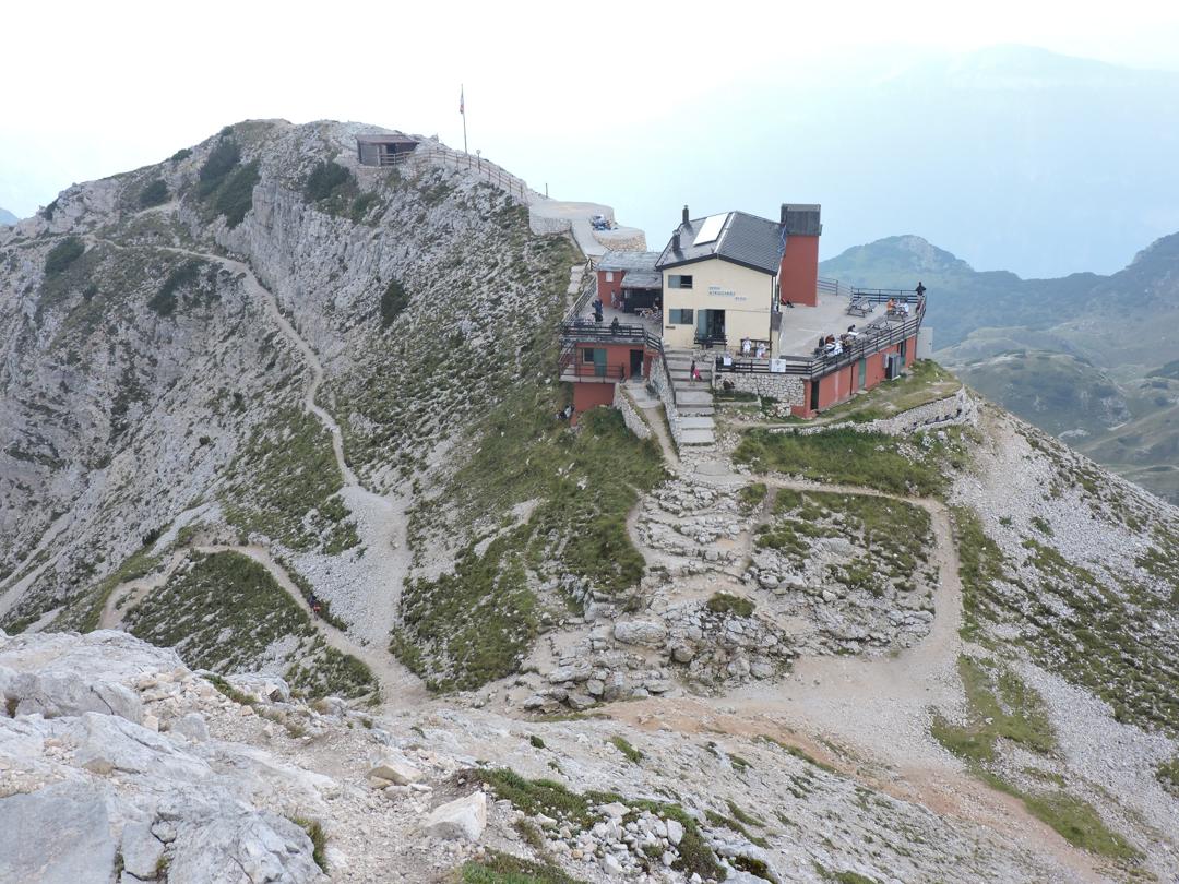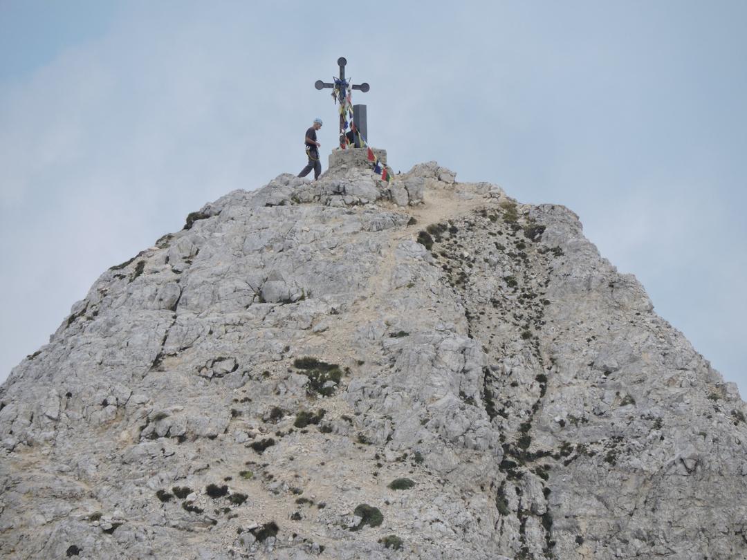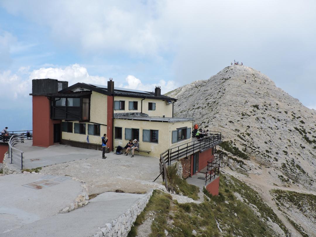Dal rifugio alla cima ci si arriva in cinque minuti seguendo un improbabile sentiero tra le rocce.