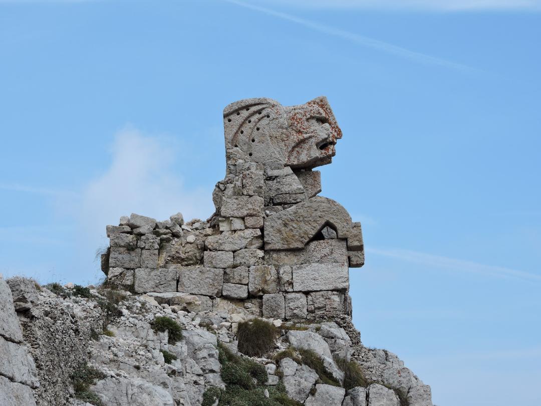 All'inizio del sentiero un Grifone, probabilmente realizzato dai reparti dell'Impero Austro-Ungarico durante la Grande Guerra, sembra controllare la sottostante valle.