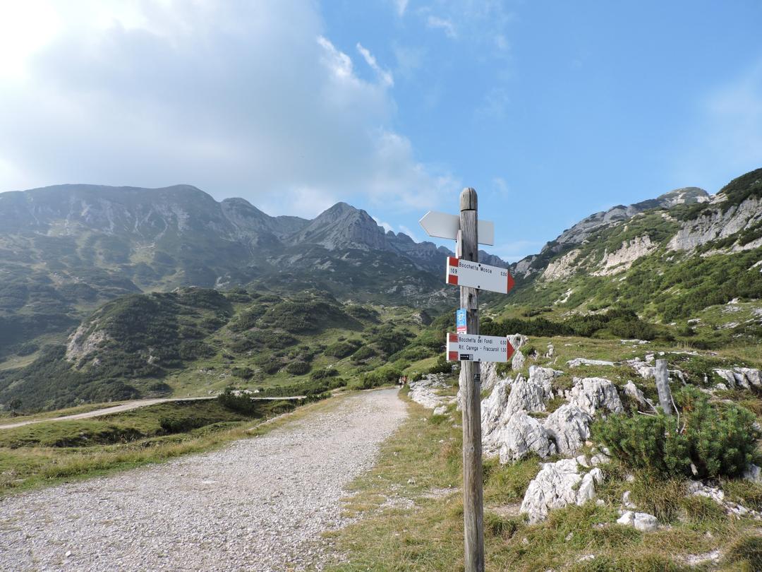 Da passo Pertica verso Bocchetta Mosca (sentiero 109). Dopo il secondo tornante (vanno fatti tutti e due, non prendere scorciatoie), dopo circa un centinaio di metri si trova l'indicazione per il sentiero 108 che porta al rifugio Fraccaroli.