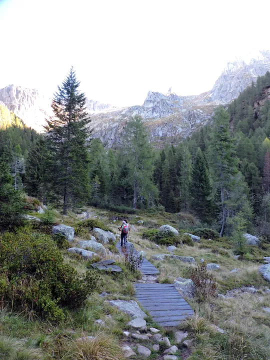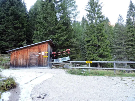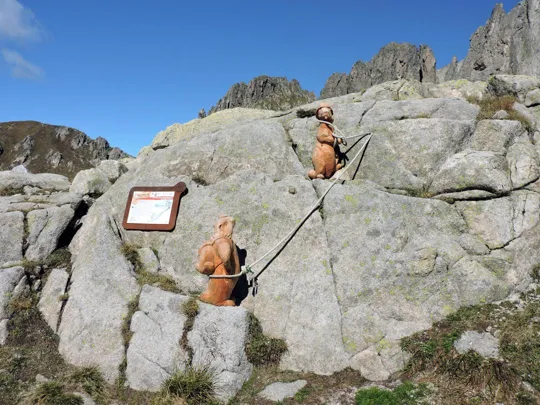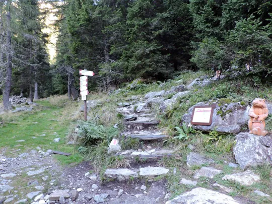 Subito dopo il tornante, a destra inizia il sentiero. Fate attenzione alla marmotta Ghiottona che dicono gli piaccia rubare dagli zaini i pranzi degli escursionisti.