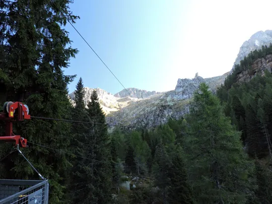 La strada prosegue nel bosco passando il Ponte Val Vendrame fino ad arrivare alla Teleferica Brusà.
