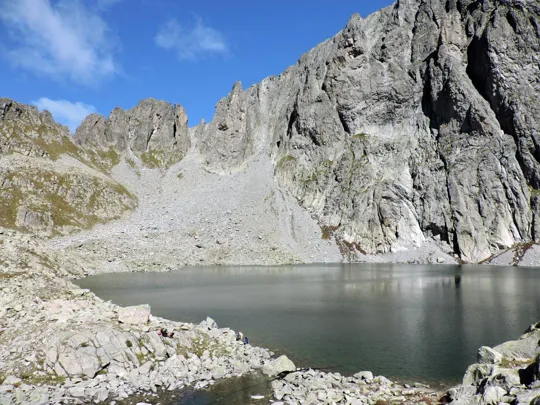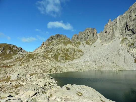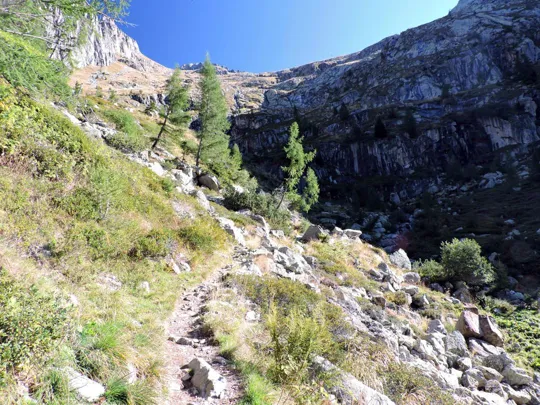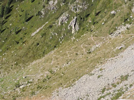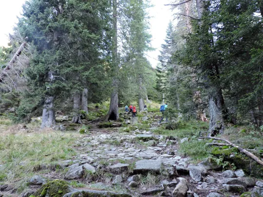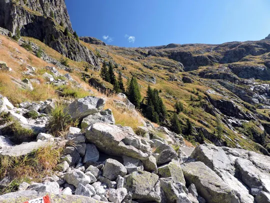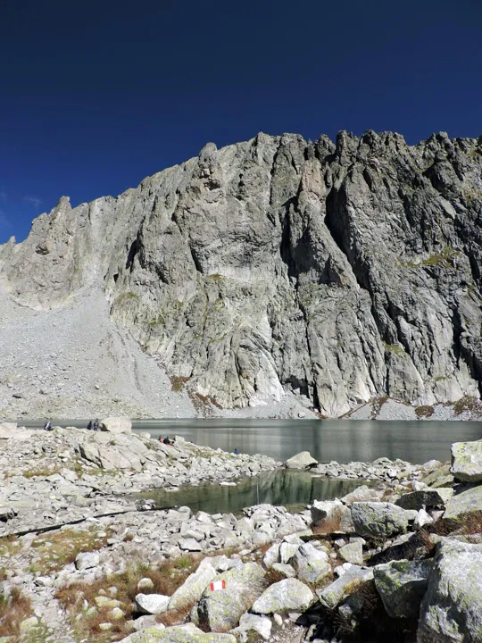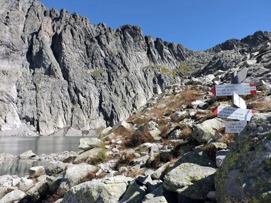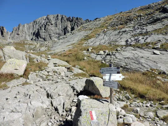 Camminando inizialmente su enormi rocce granitiche il sentiero diventa molto sassoso/roccioso, e la segnaletica bianco/rossa trae un po' in inganno. Molti salivano lungo il torrente asciutto di scarico del lago piuttosto che per la strada corretta.