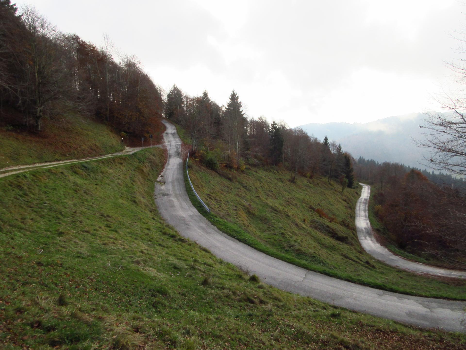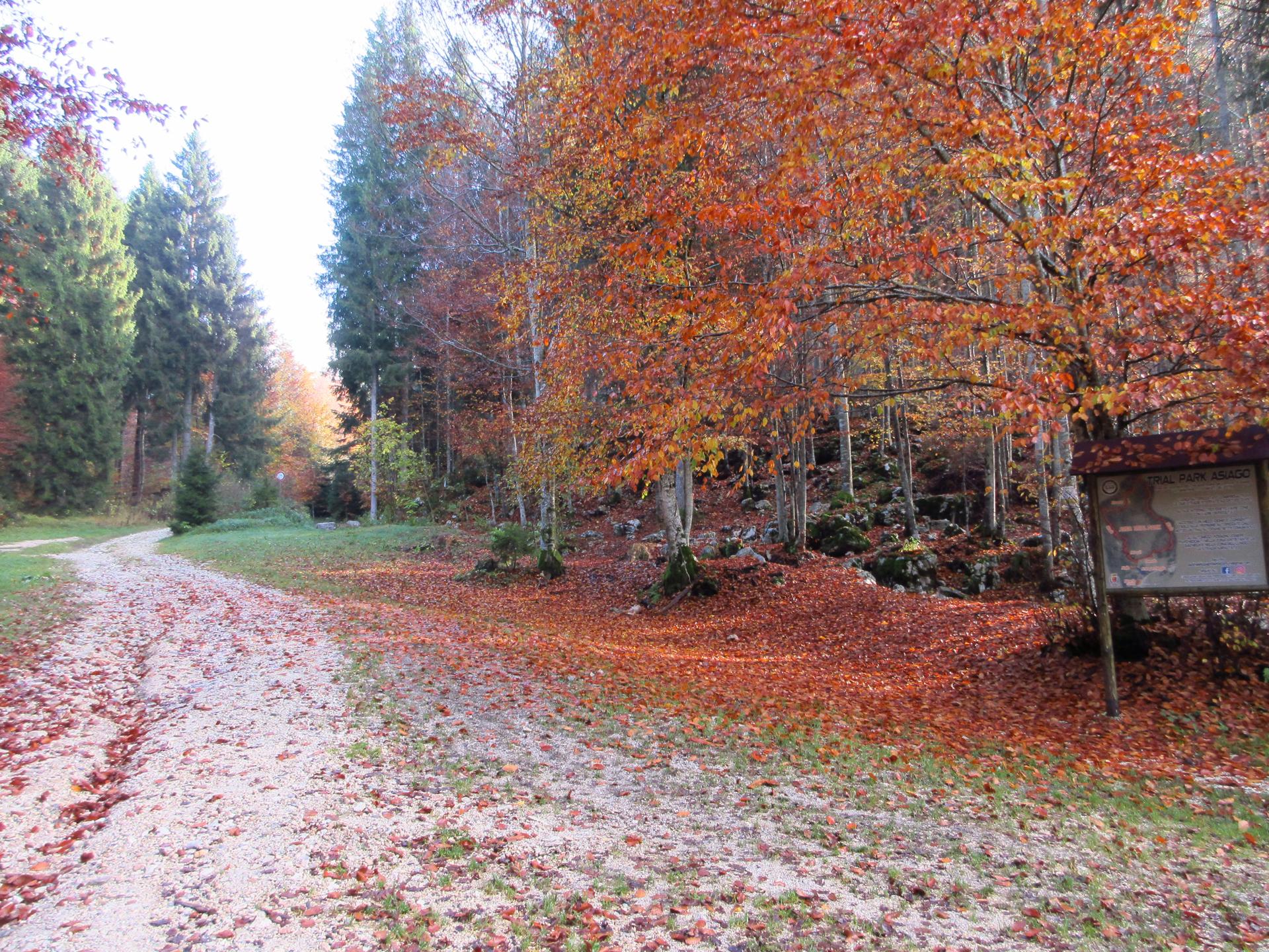 La strada prosegue in salita passando vicino al Trial Park Asiago Sette Comuni.