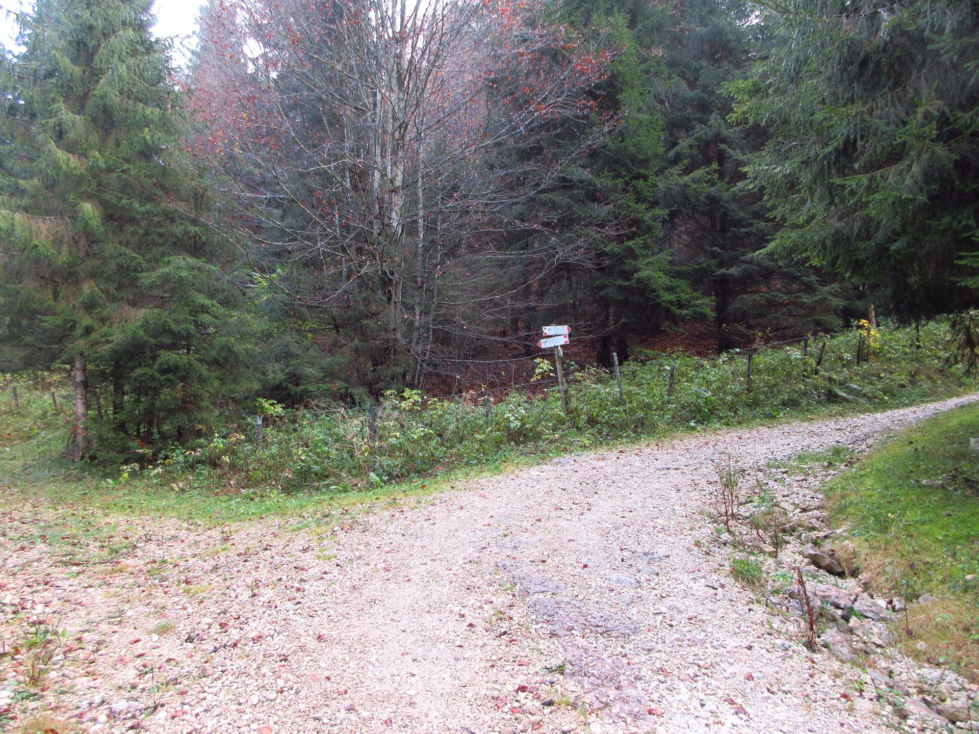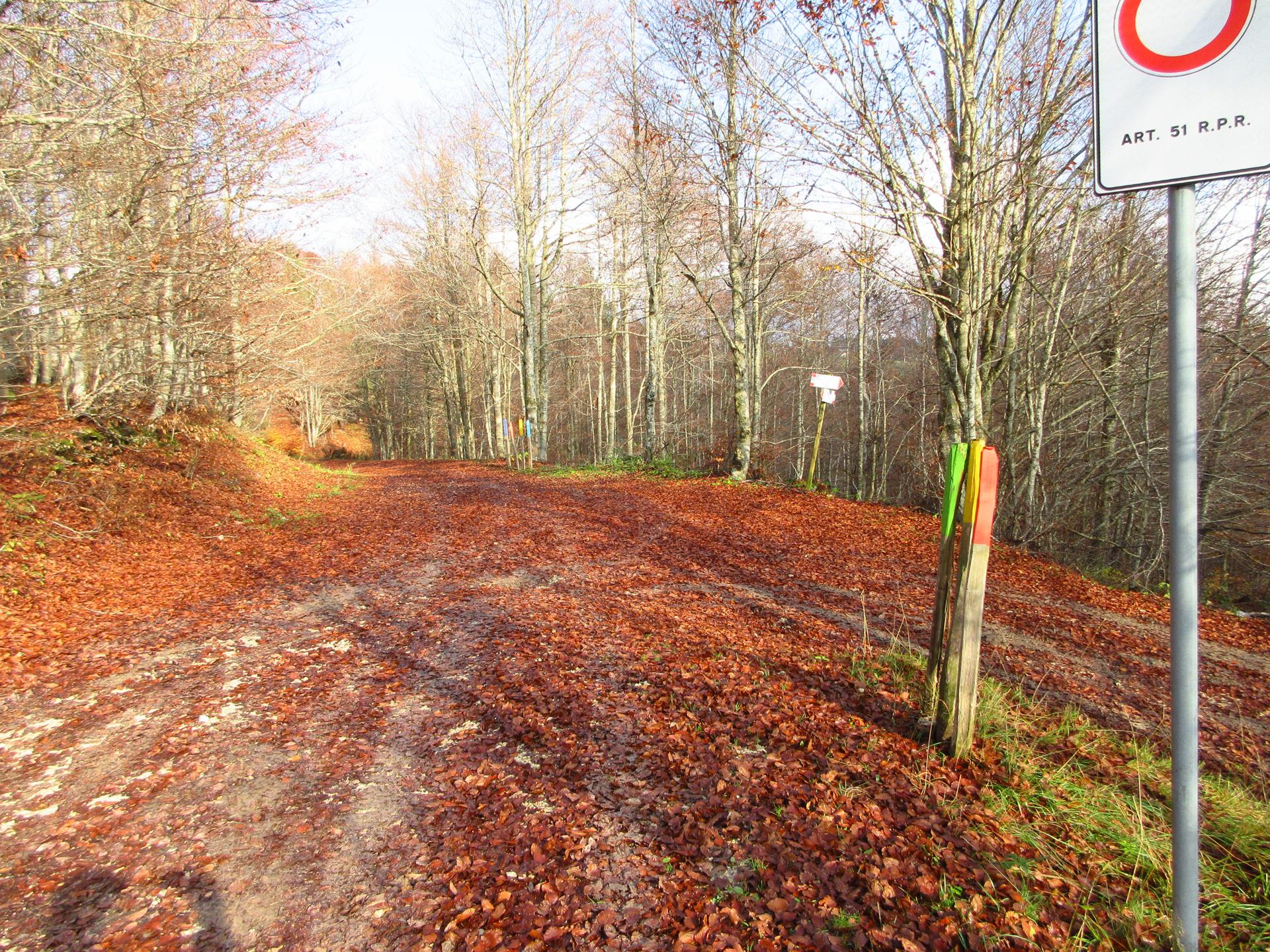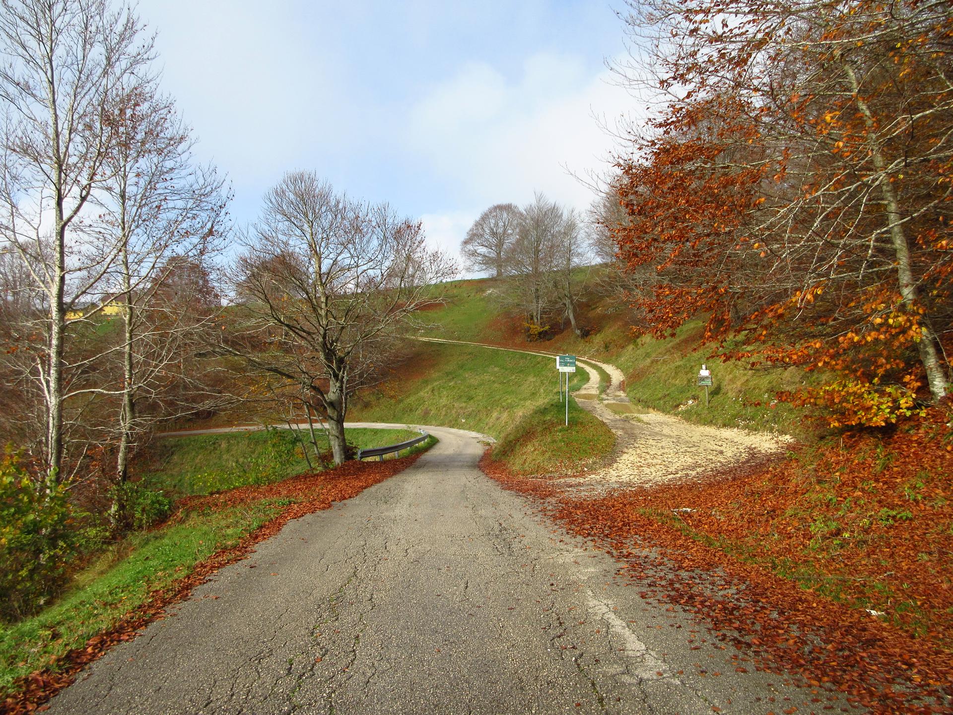 Proseguendo lungo la strada si trova un'incrocio dove è necessario tenere a destra continuando la salita. Le indicazione delle tabelle sono comunque chiare.